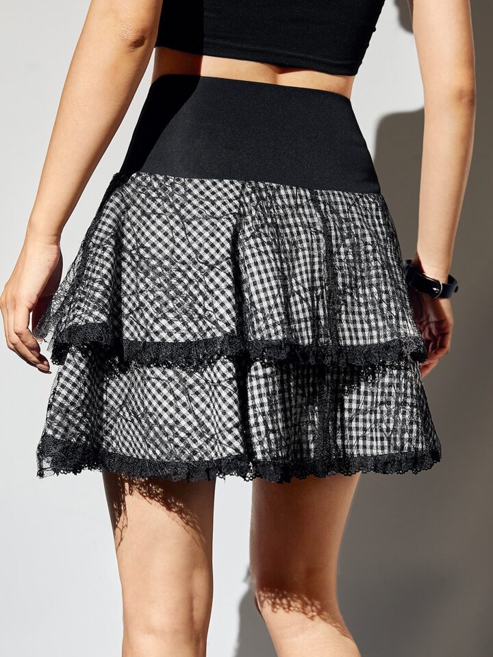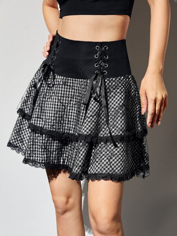 Fairycore Gingham Lace Up Layered Skirt