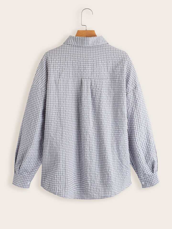 Fairycore Gingham Print Drop Shoulder Shirt