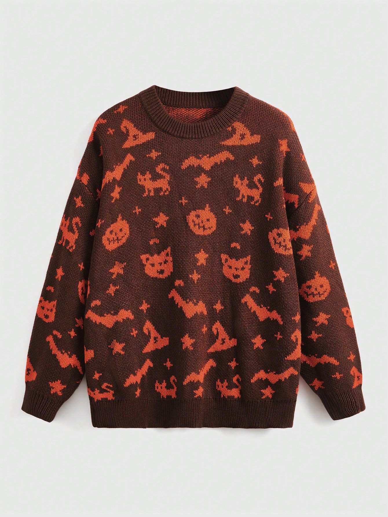 Fairycore Halloween Pattern Drop Shoulder Sweater