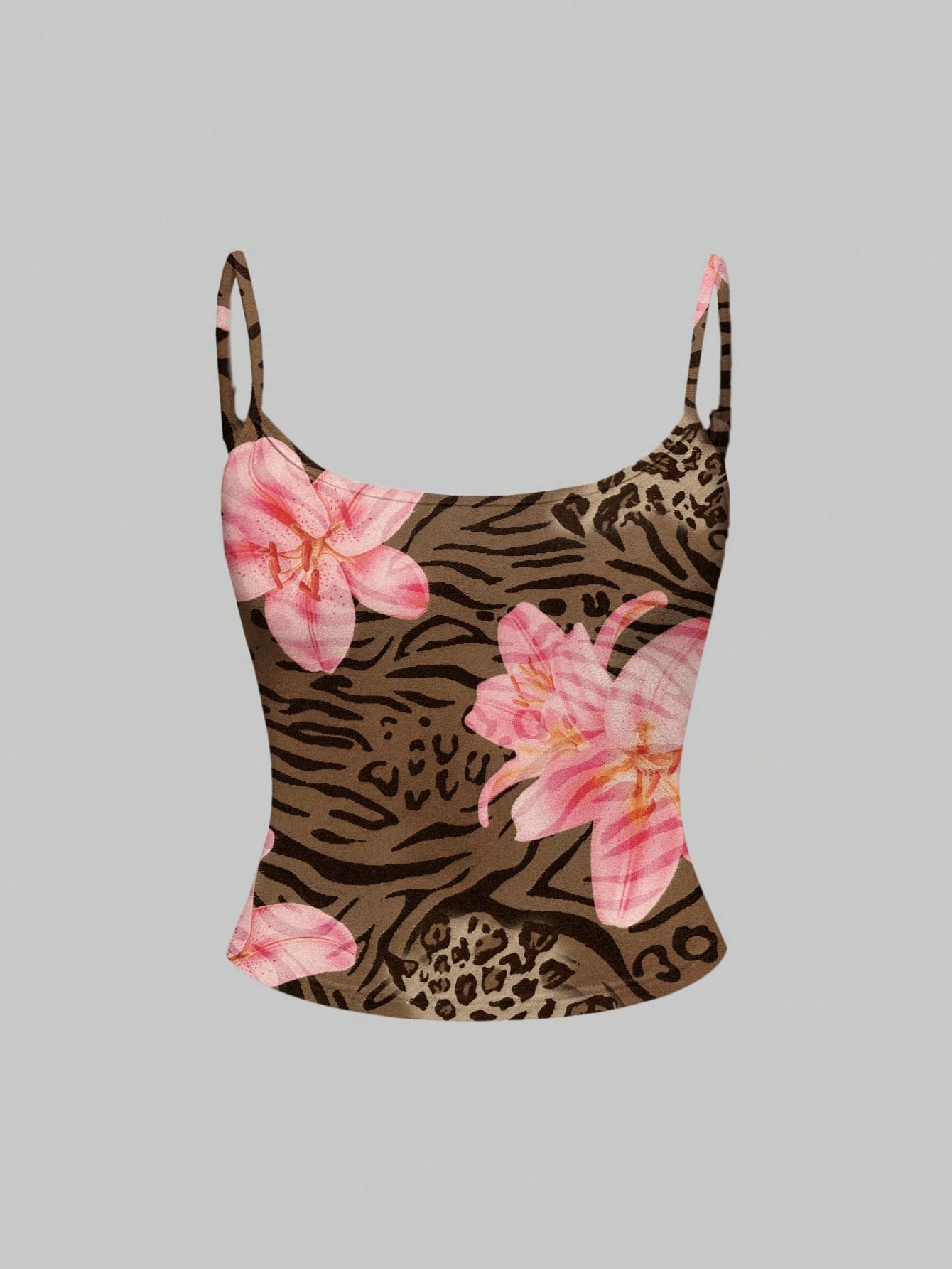 Fairycore Holiday Beach Babe Vintage Hibiscus, Leopard And Zebra Print Women Camisole Tank Top