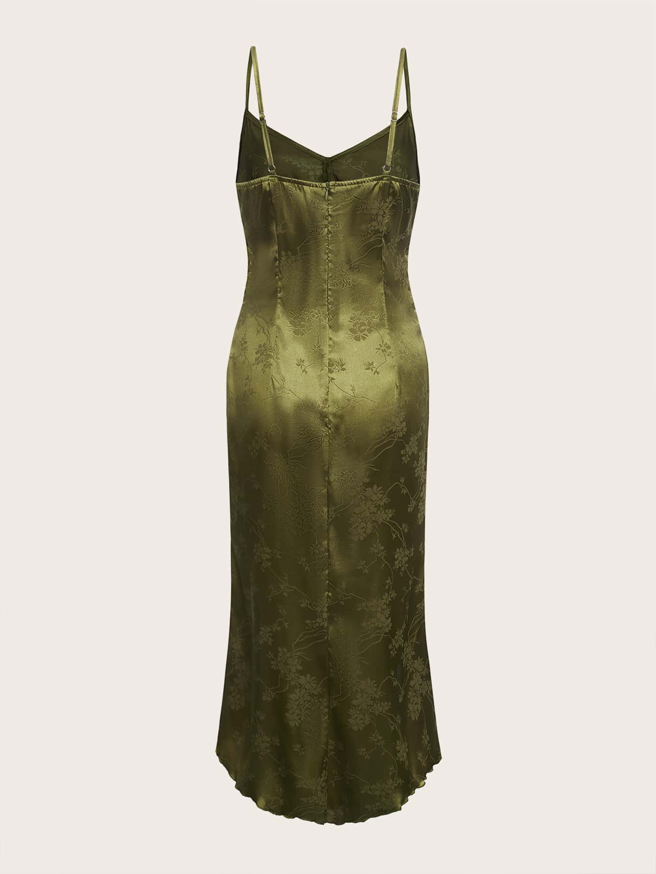 Fairycore Jacquard Knot Front High Low Hem Satin Cami Dress