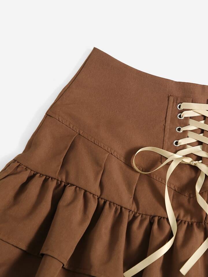Fairycore Lace Up Ruffle Hem Skirt