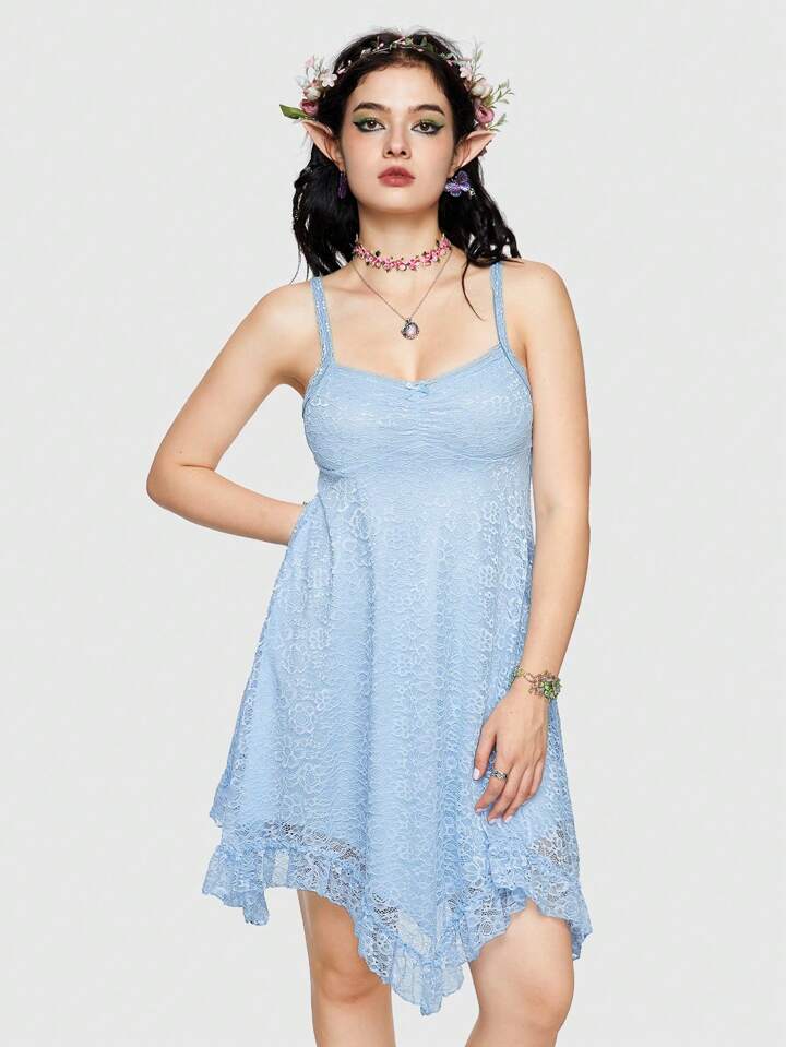 Fairycore Ladies' Asymmetrical Hem Lace Fabric Dress