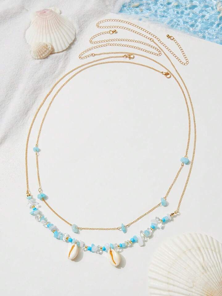 Fairycore Mermaid 2pcs/set Shell & Stone Decor Waist Chain