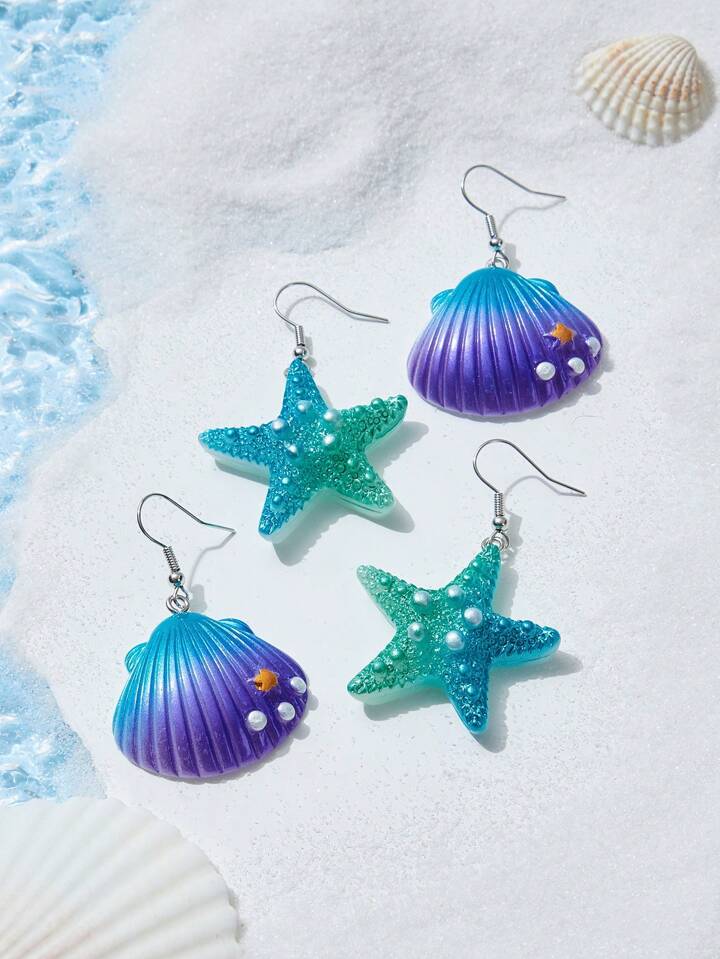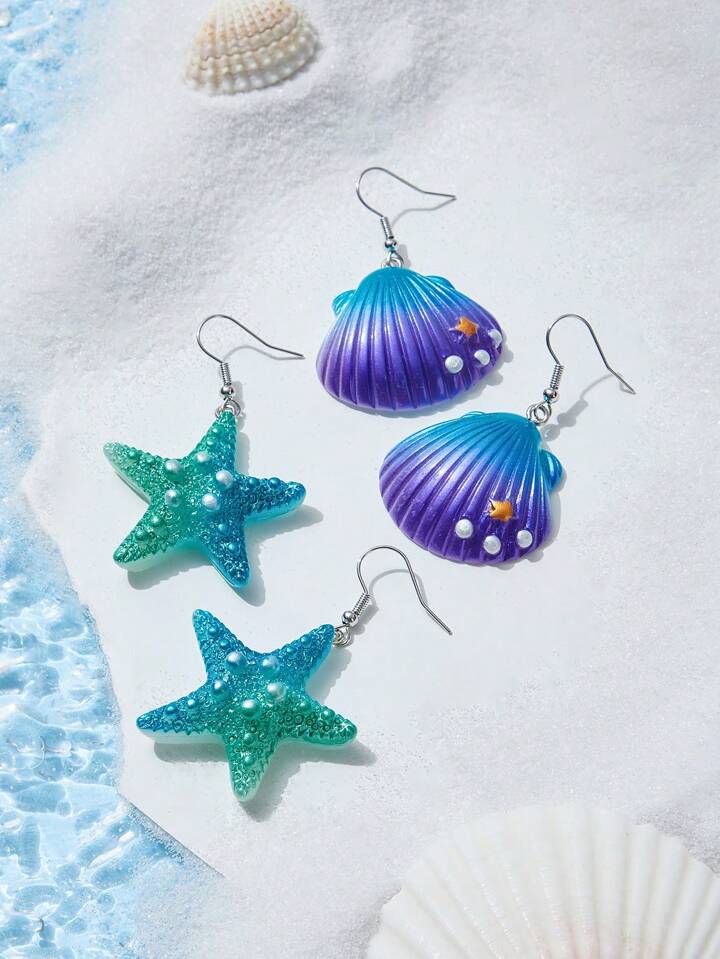 Fairycore Mermaid 4pcs Starfish & Shell Decor Earrings