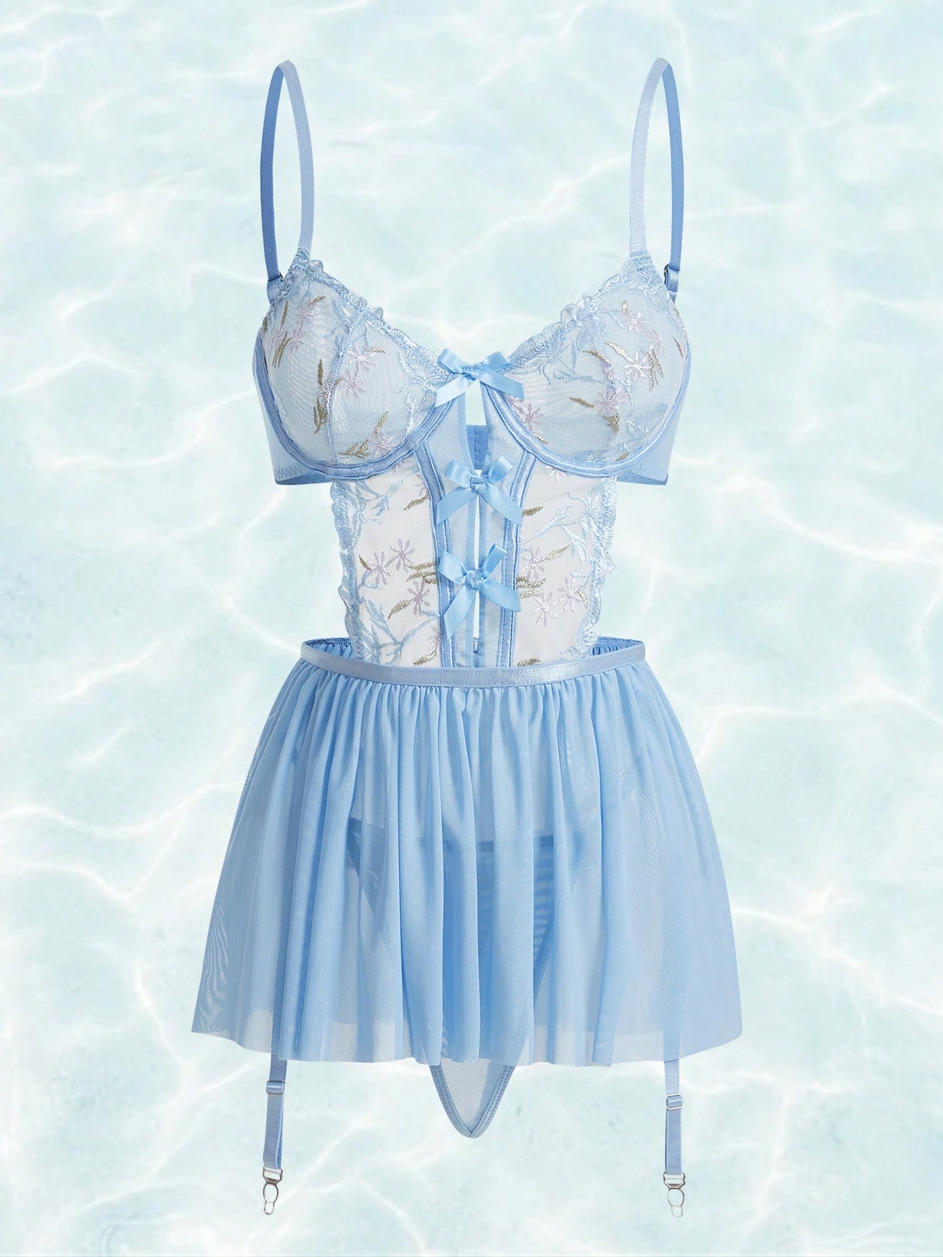 Fairycore Mermaid Contrast Lace Mesh Garter Slips With Thong