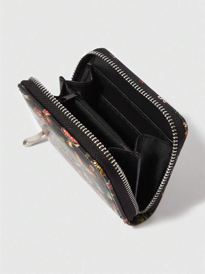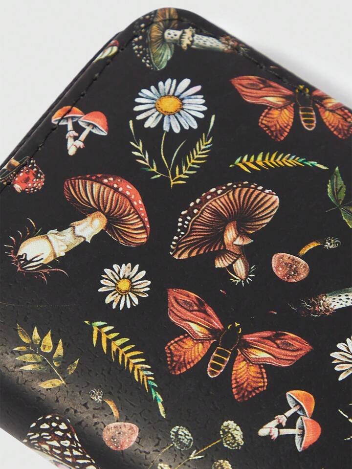 Fairycore Mushroom & Butterfly Short Wallet, Simple Zipper Coin Purse For Women