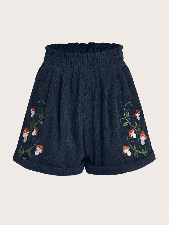 Fairycore Mushroom Embroidery Corduroy Shorts