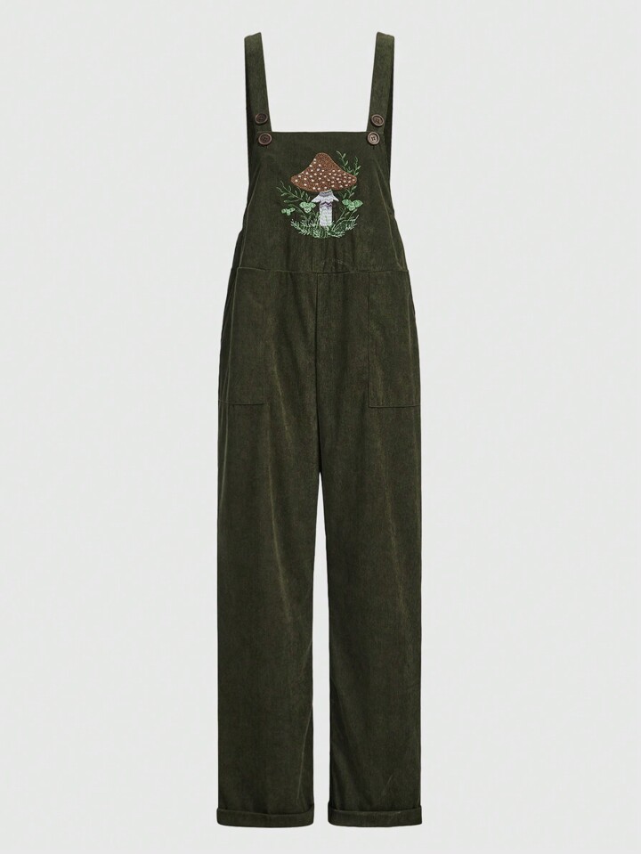 Fairycore Mushroom Embroidery Pocket Front Overall Jumpsuit