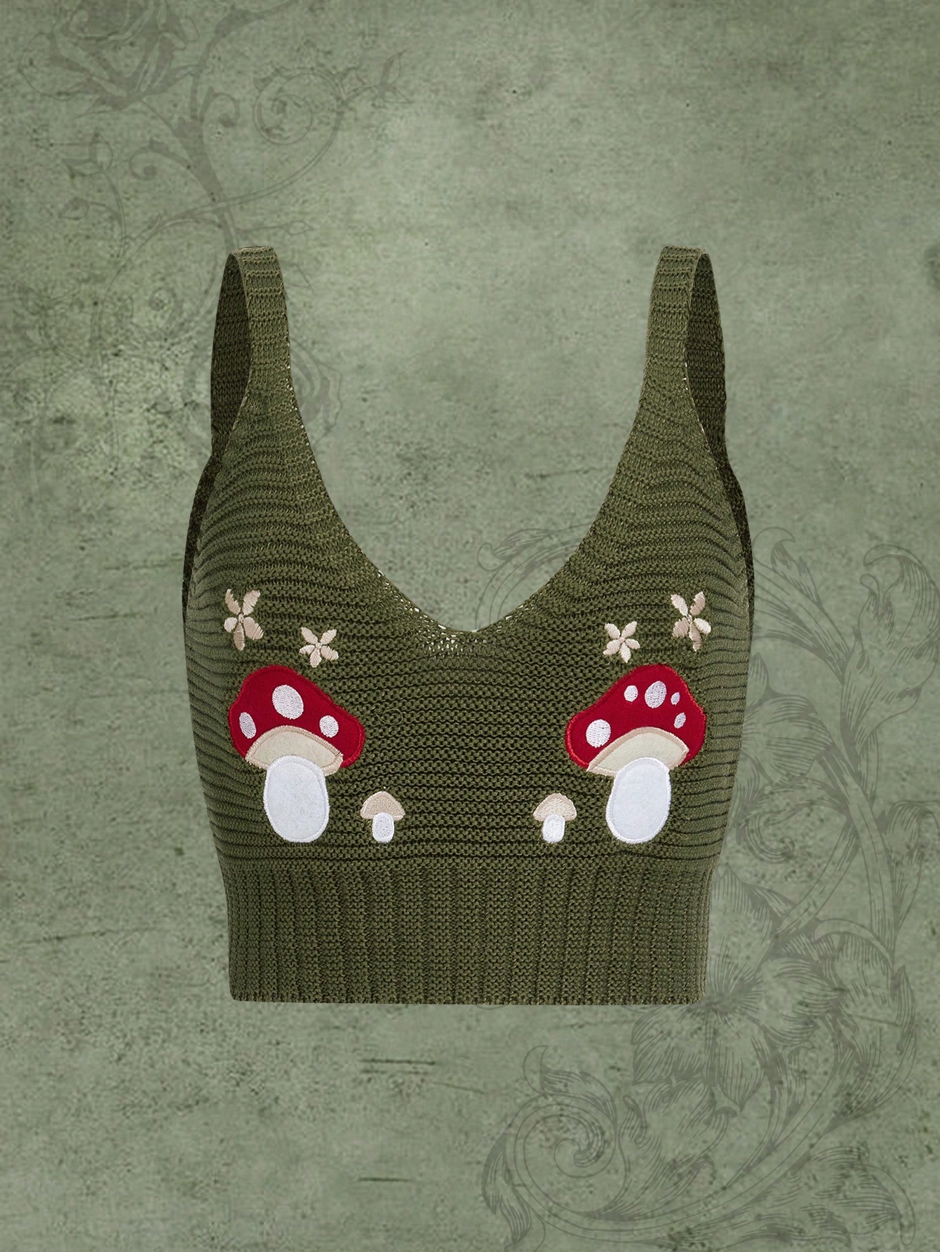 Fairycore Mushroom Pattern Embroidery Tank Knit Top