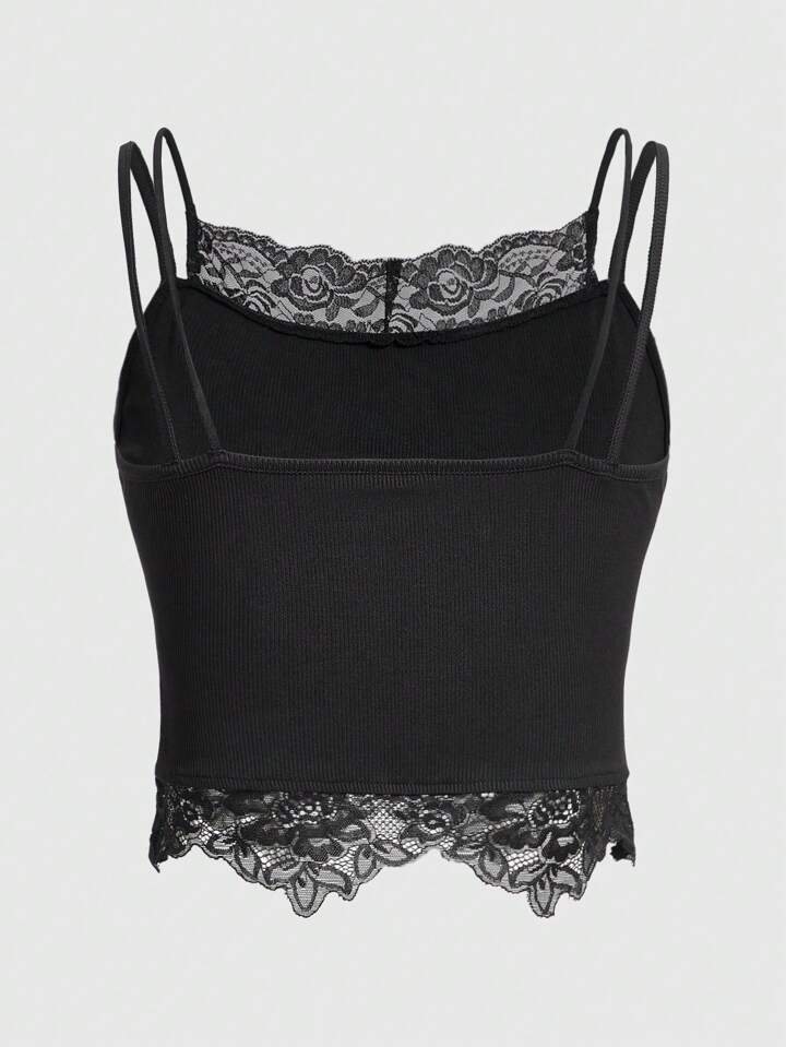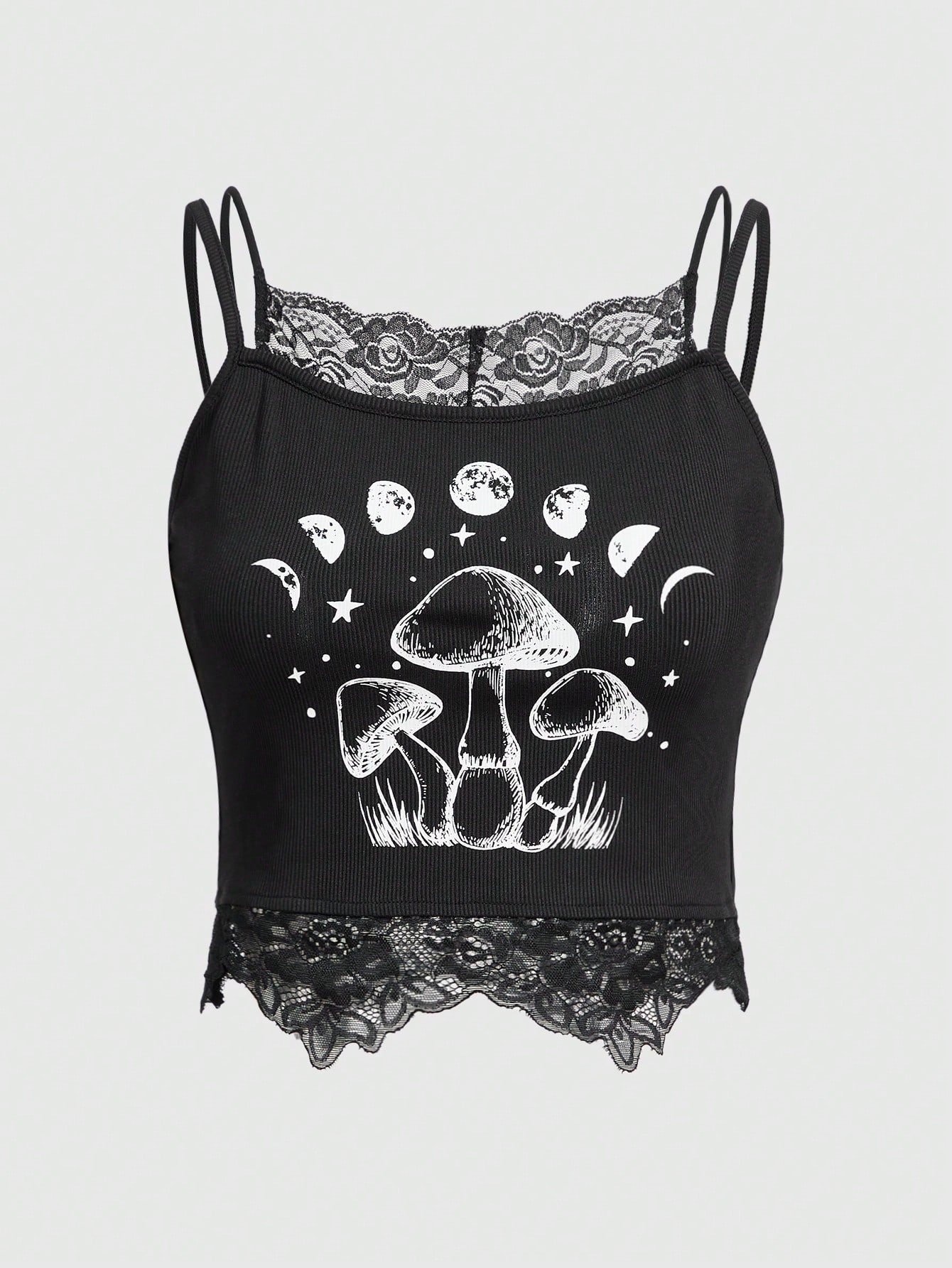 Fairycore Mushroom Print Contrast Lace Cami Top
