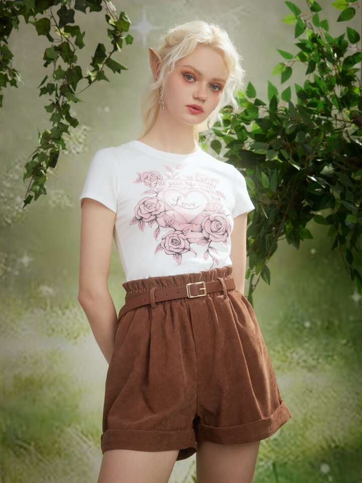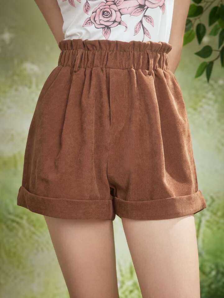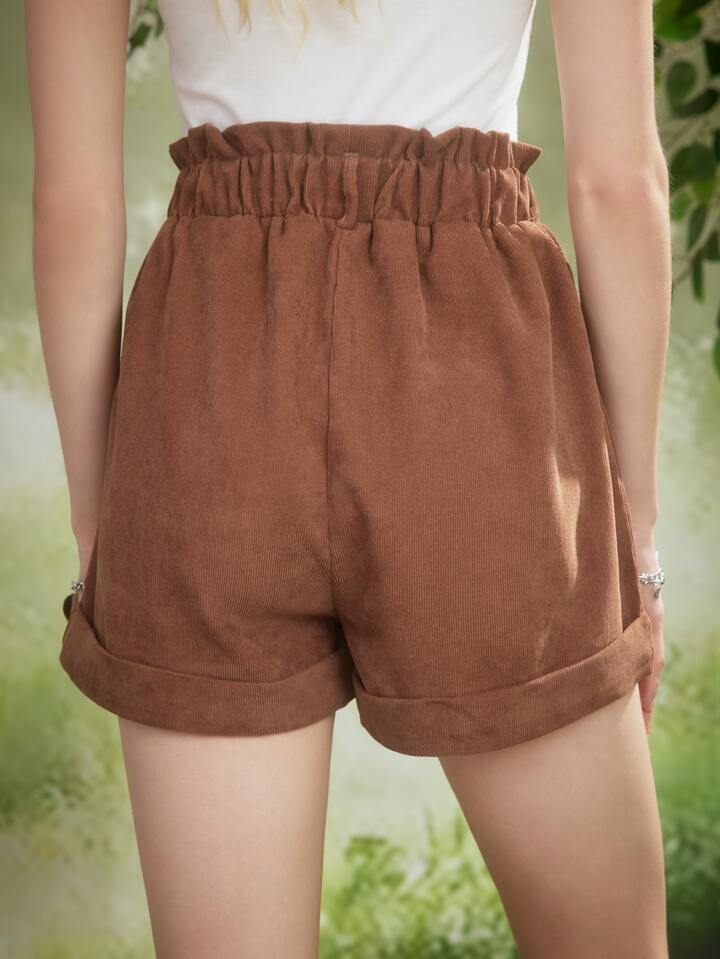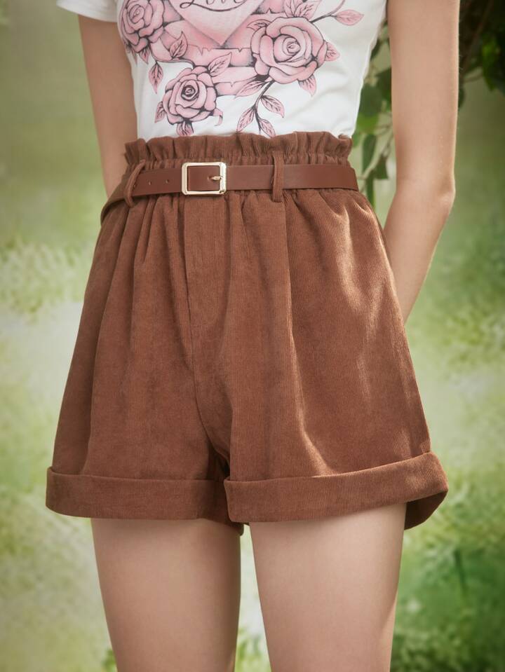 Fairycore Paperbag Waist Corduroy Shorts Without Belt