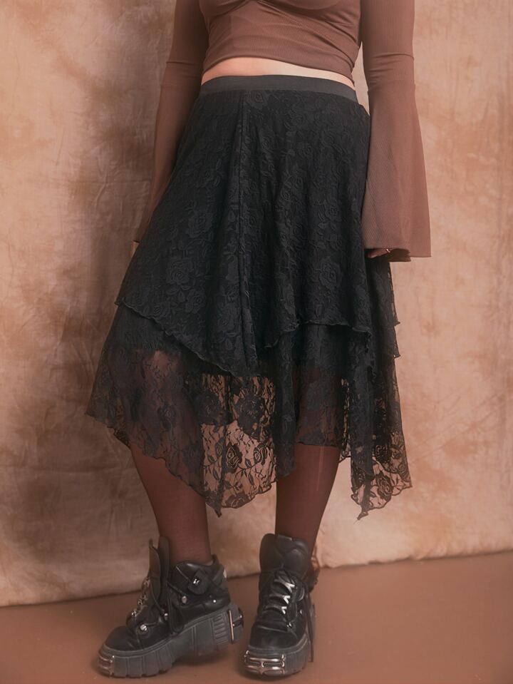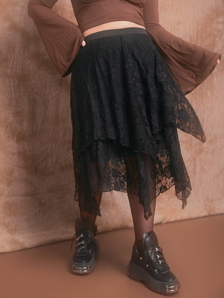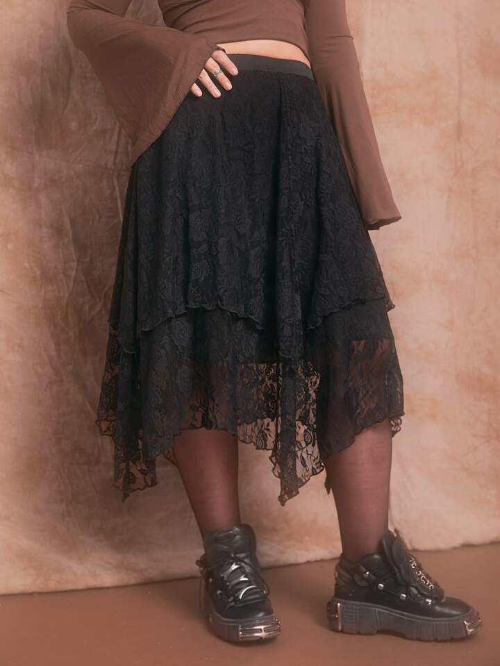 Fairycore Plus Asymmetrical Hem Lace Skirt