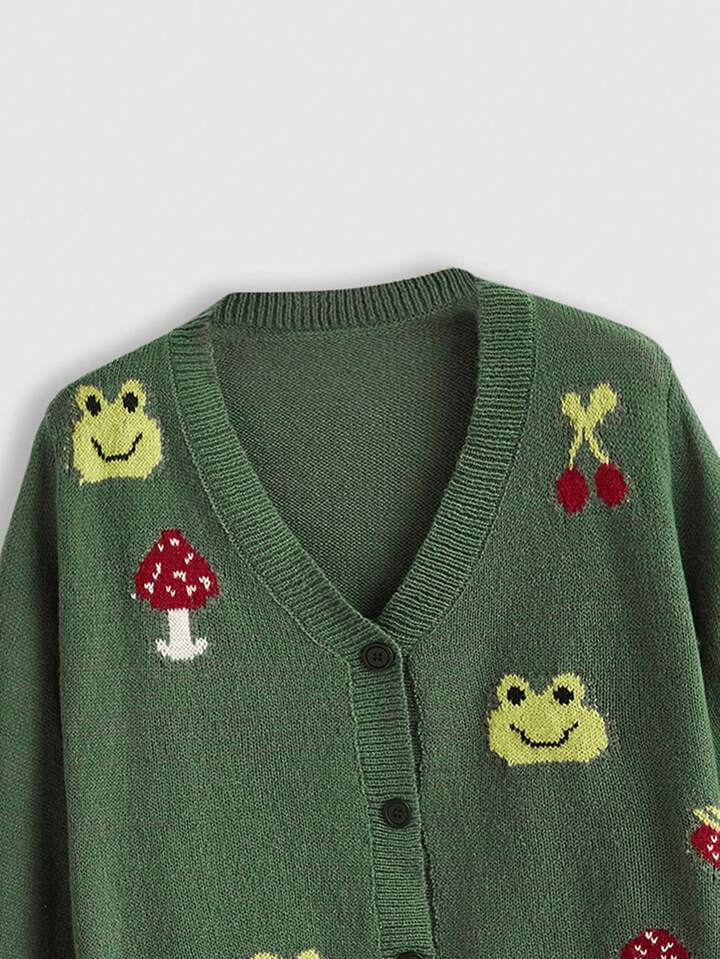 Fairycore Plus Mushroom & Frog Pattern Cardigan