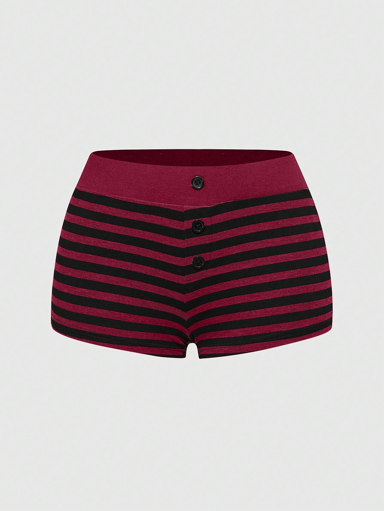 Fairycore Plus Size American Black & Grey Striped 3-Button Triangular Mini Shorts