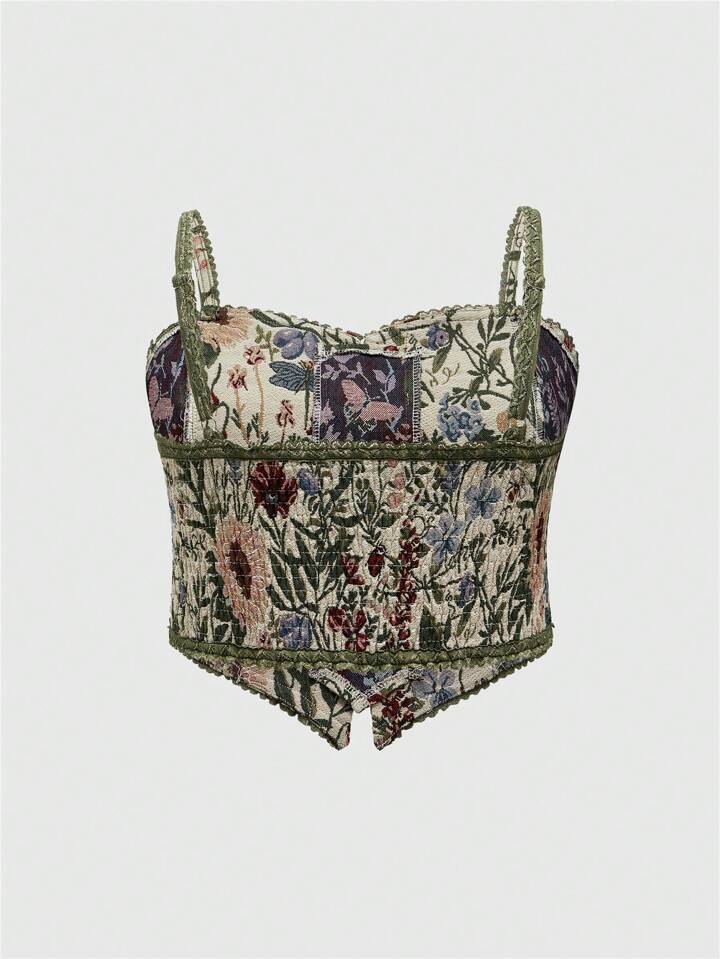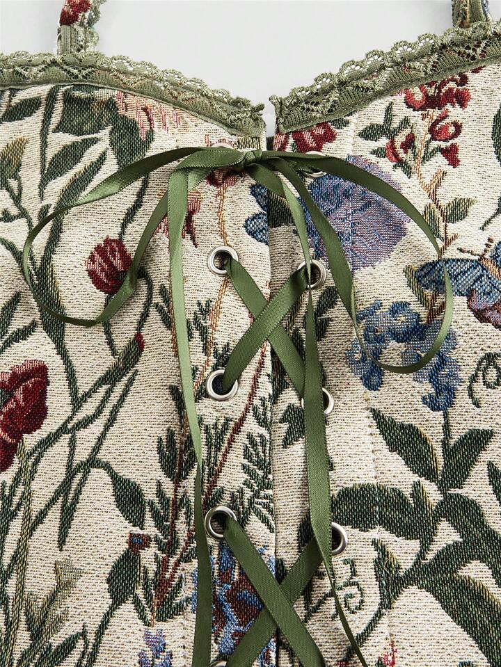 Fairycore Plus Size Floral Jacquard Lace Trim Criss-Cross Tie Back Camisole Top