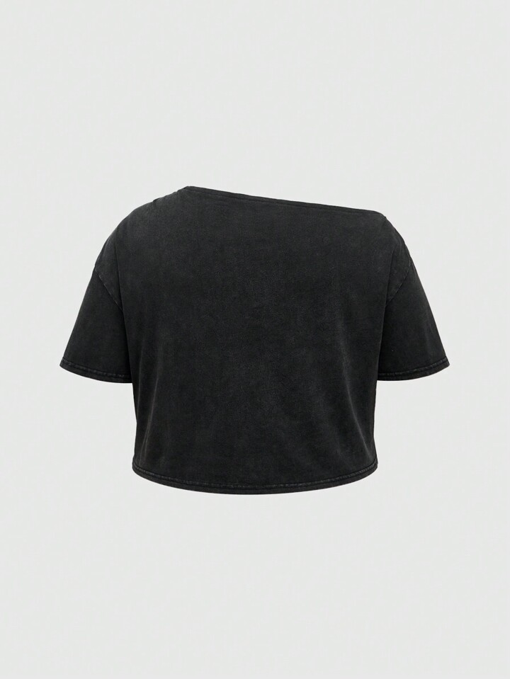 Fairycore Plus Size Loose Oblique-Shoulder Wing Print Top