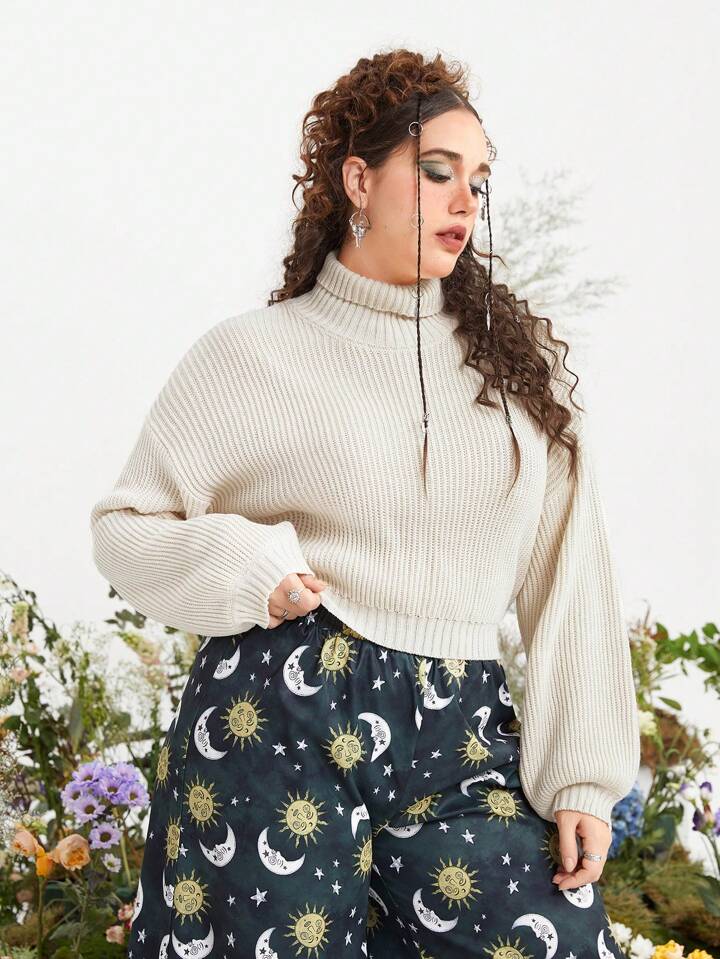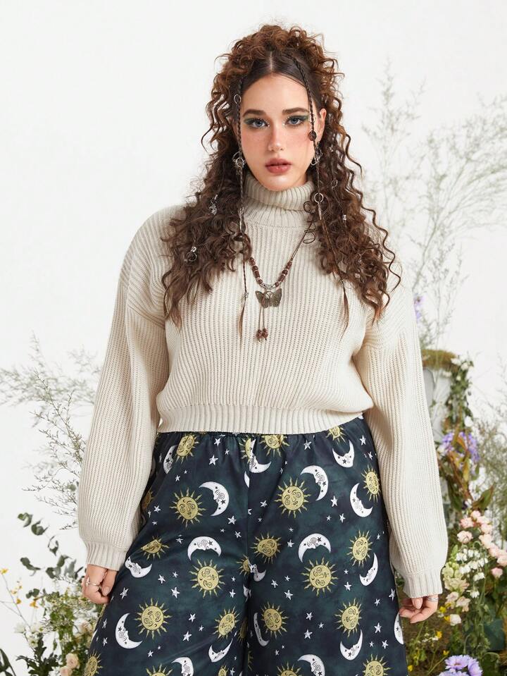 Fairycore Plus Turtleneck Drop Shoulder Sweater