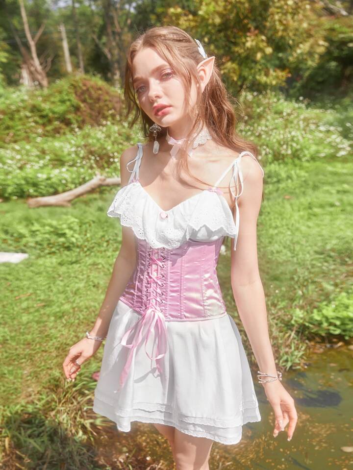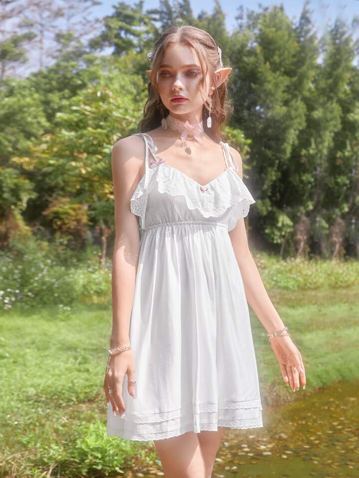 Fairycore Ruffle Trim Contrast Lace Cami Dress Without Corset