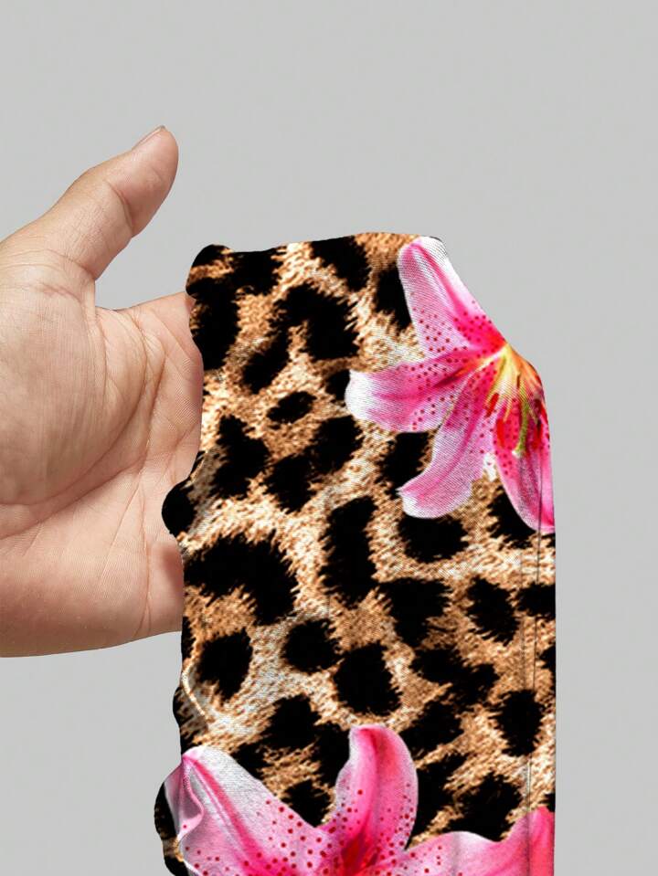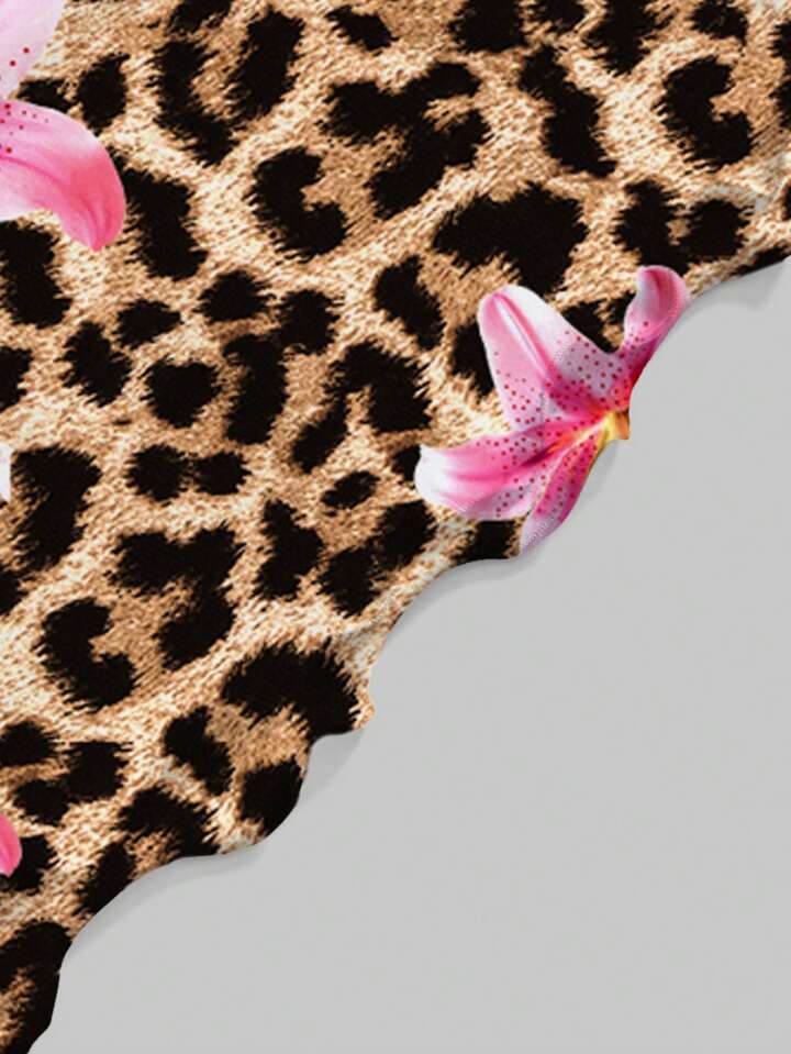 Fairycore Sexy Vacation Leopard Print & Hibiscus Floral Mermaid Hem Bodycon Spaghetti Strap Dress For Women