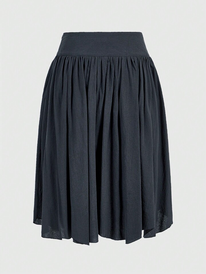 Fairycore Solid Color Loose Fit Zipper Design Casual Skirt
