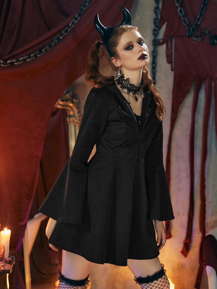 Fairycore Solid Flounce Sleeve Zip Up Coat