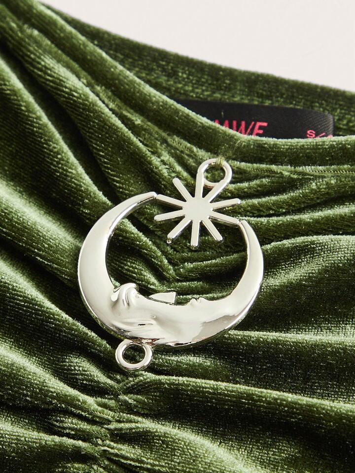 Fairycore Solid Frill Trim Tie Shoulder Ruffle Hem Velvet Cami Dress
