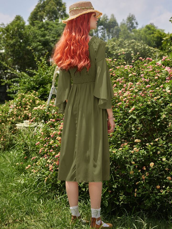 Fairycore Square Neck Ruched Bust Flounce Sleeve Dress