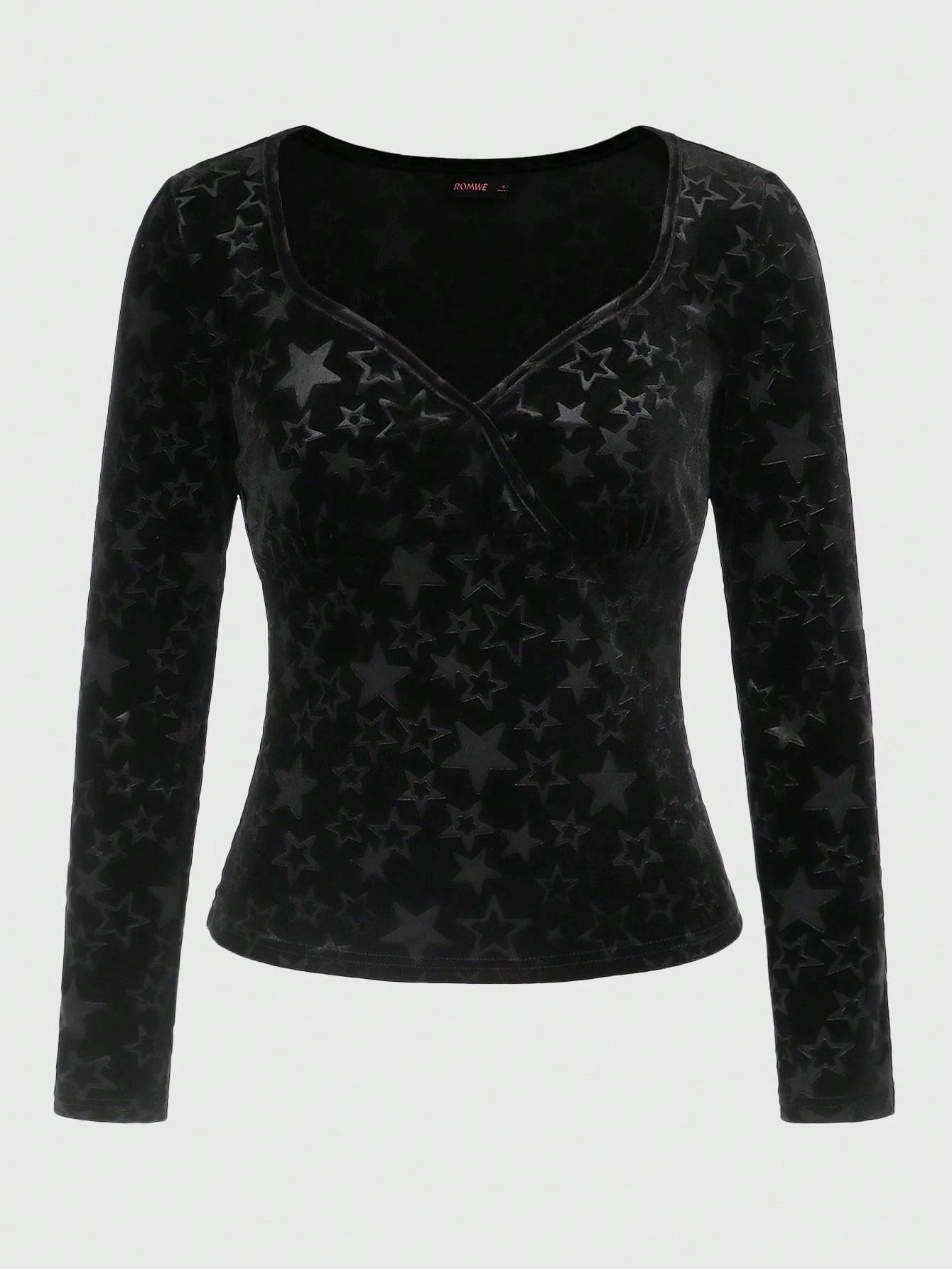 Fairycore Star Pattern Sweetheart Neck Velvet Tee