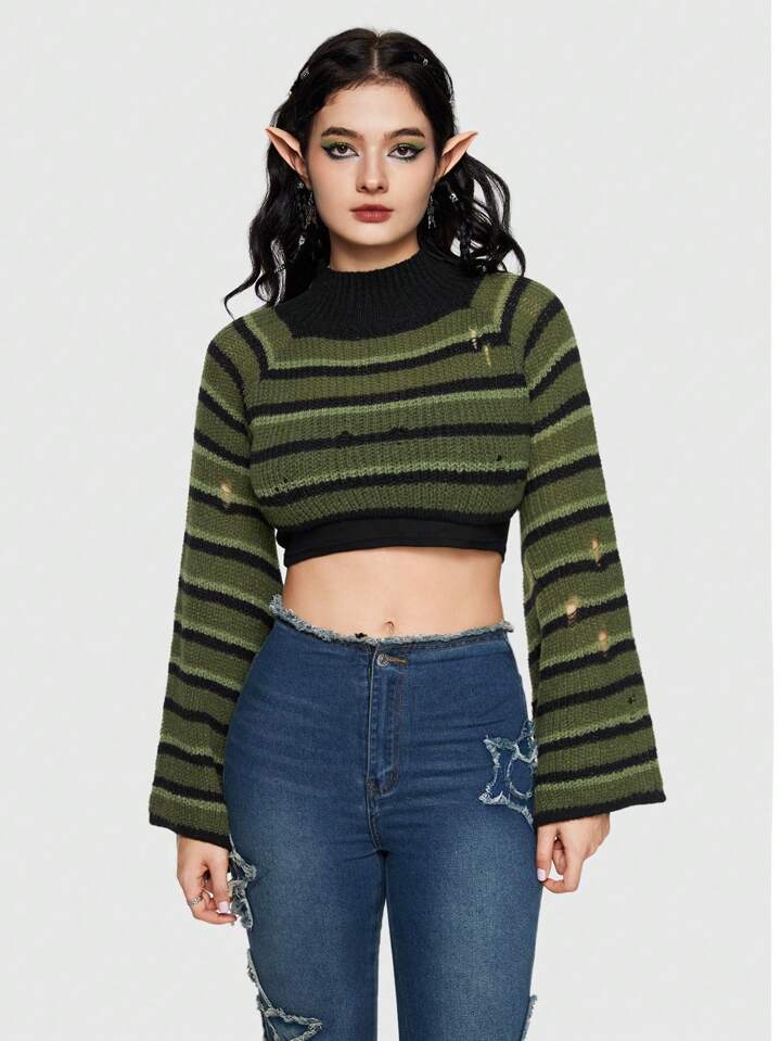 Fairycore Striped Pattern Turtleneck Bell Sleeve Sweater