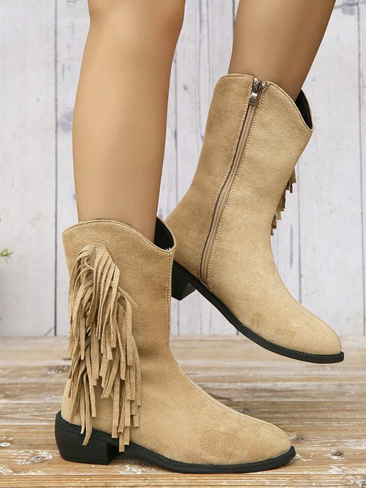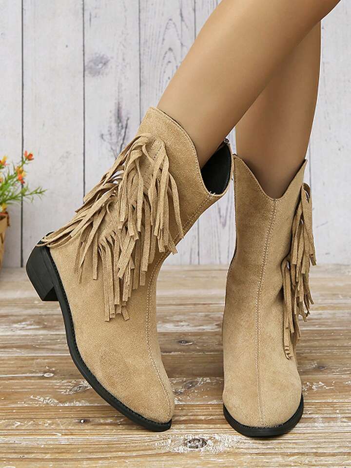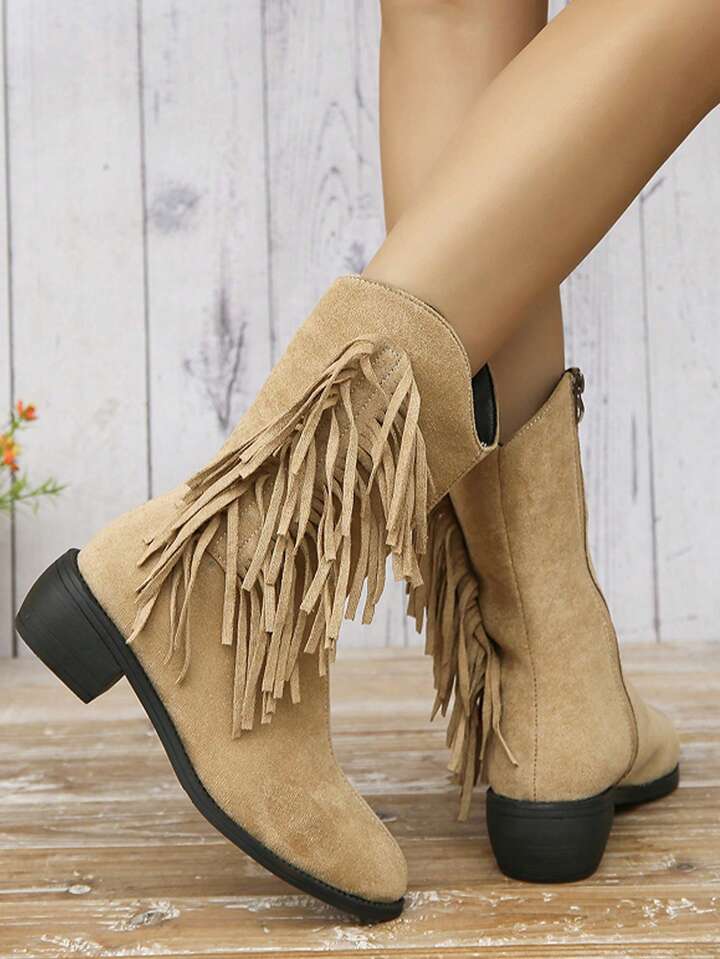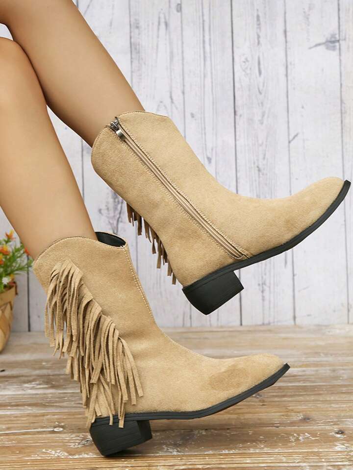 Fairycore Vintage British Style Fringed Chunky Heel Short Boots