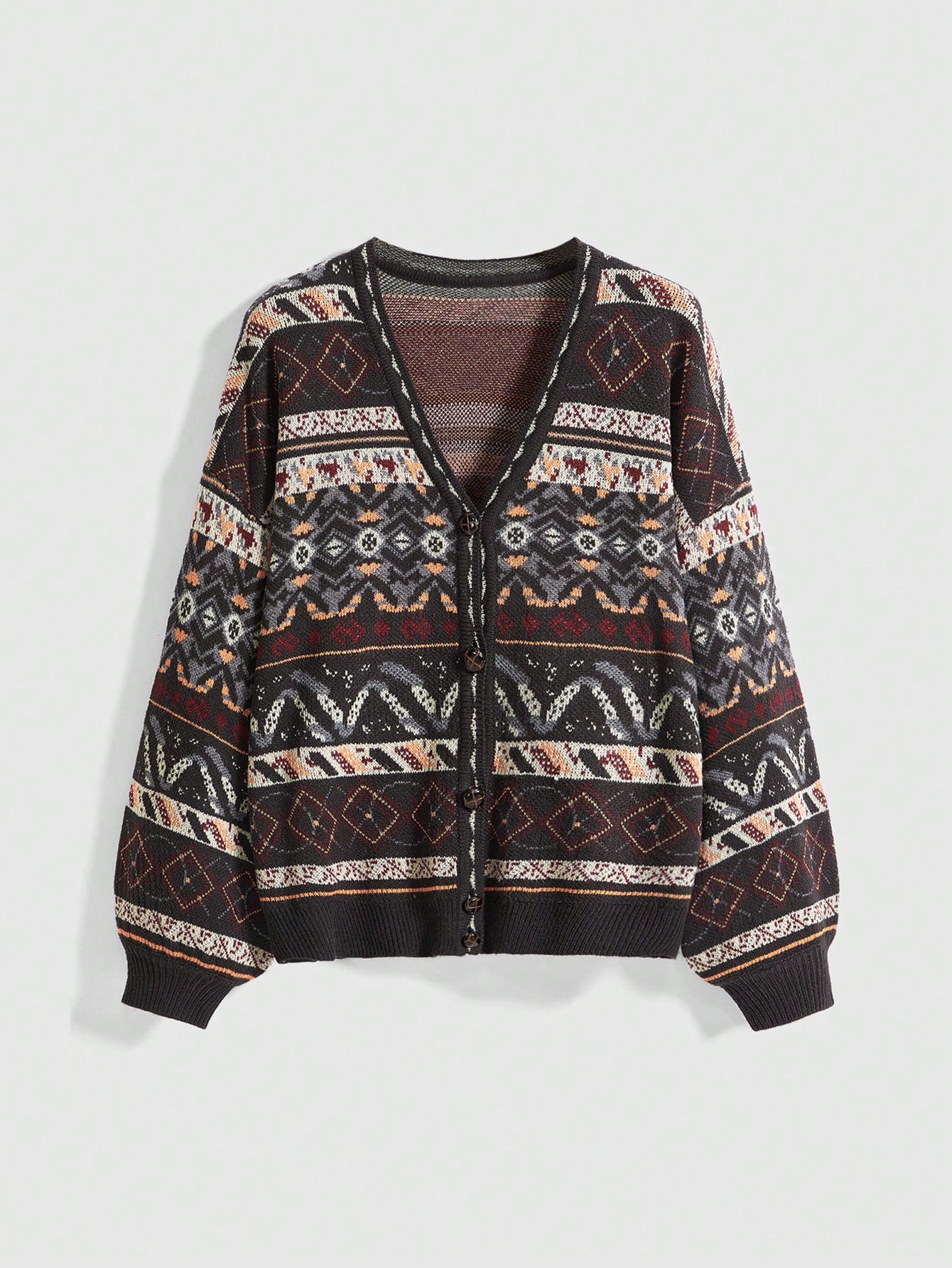 Fairycore Vintage Jacquard Pattern Plus Size Cardigan Sweater For Women/Winter