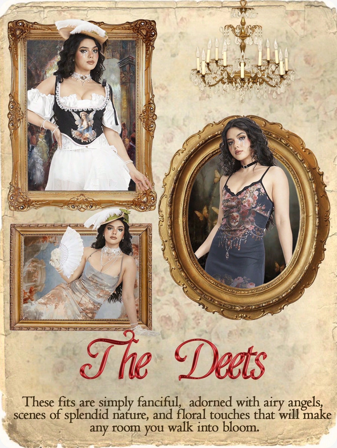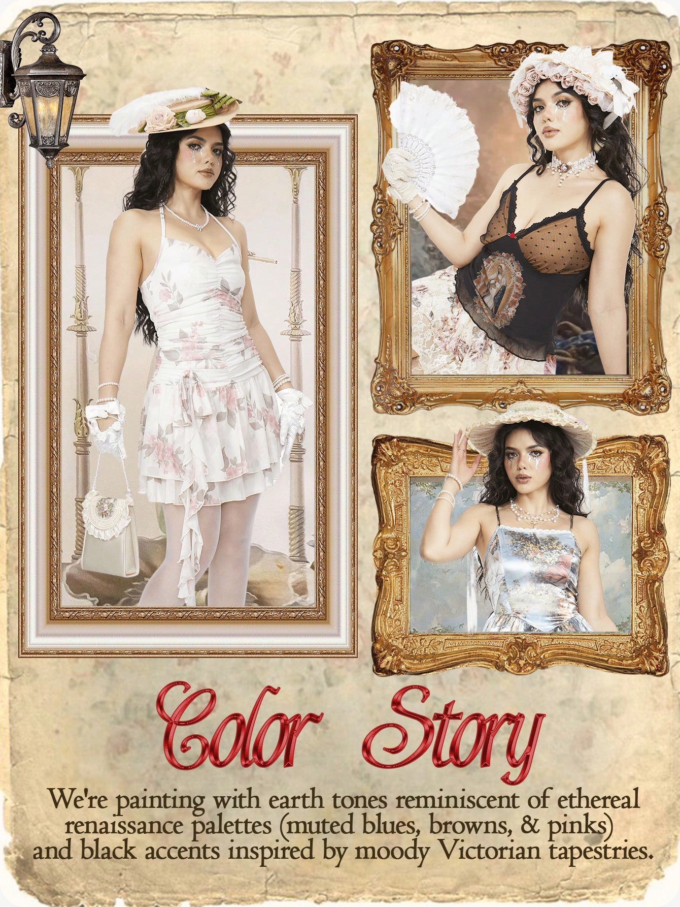 Fairycore Vintage Palace Painting Rose Printed Women's Cami Dress