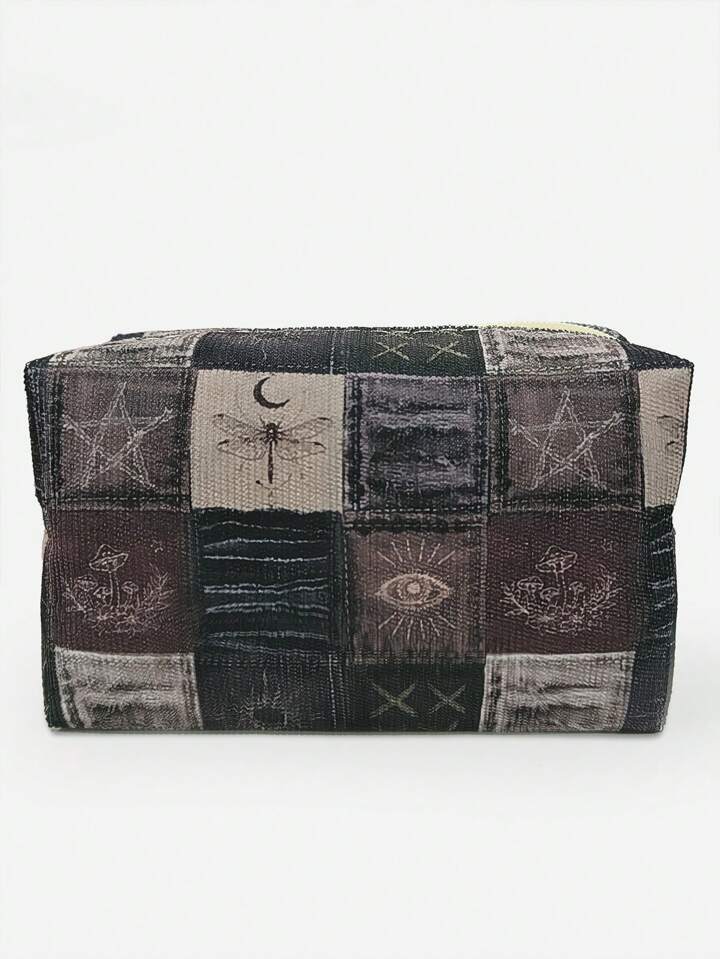 Fairycore Vintage Patchwork Pattern Octagon Velvet Cosmetic Bag