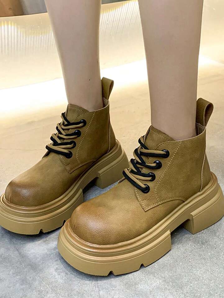 Fairycore Women Lace-up Front Combat Boots, Punk Outdoor Fashion Boots