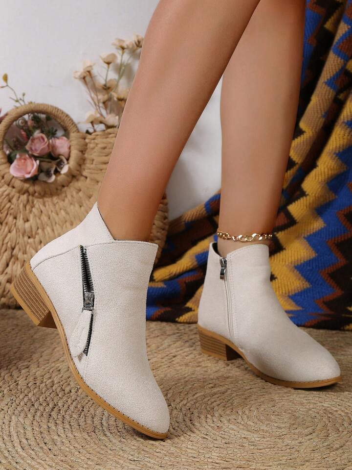 Fairycore Women Minimalist Side Zipper Point Toe Chunky Heeled Boots, Cool Outdoor Fashion Boots