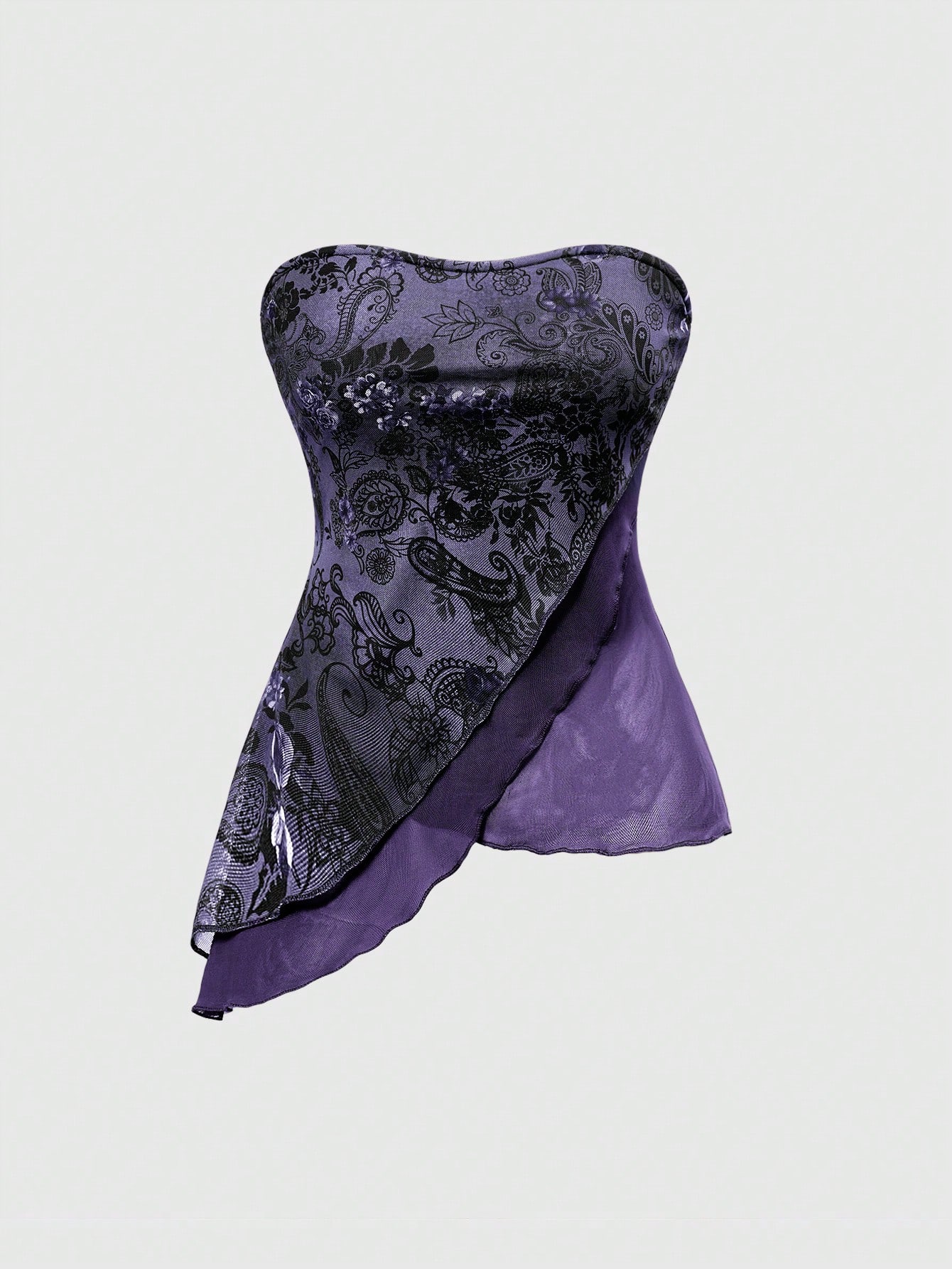 Fairycore Women Summer Resort Paisley Pattern Asymmetric Mesh Splicing Hem Tube Top