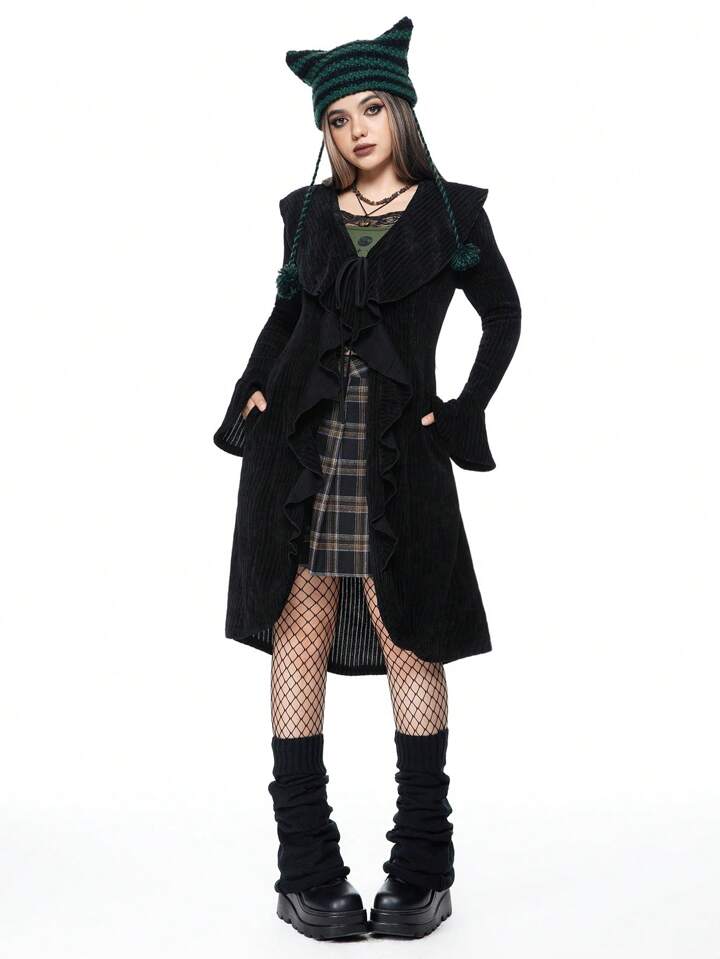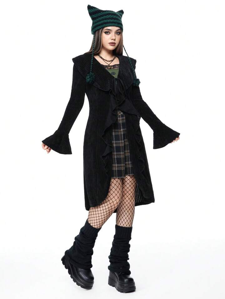 Women's Fairycore Vintage Asymmetrical Ruffle Tie Front Long Cardigan