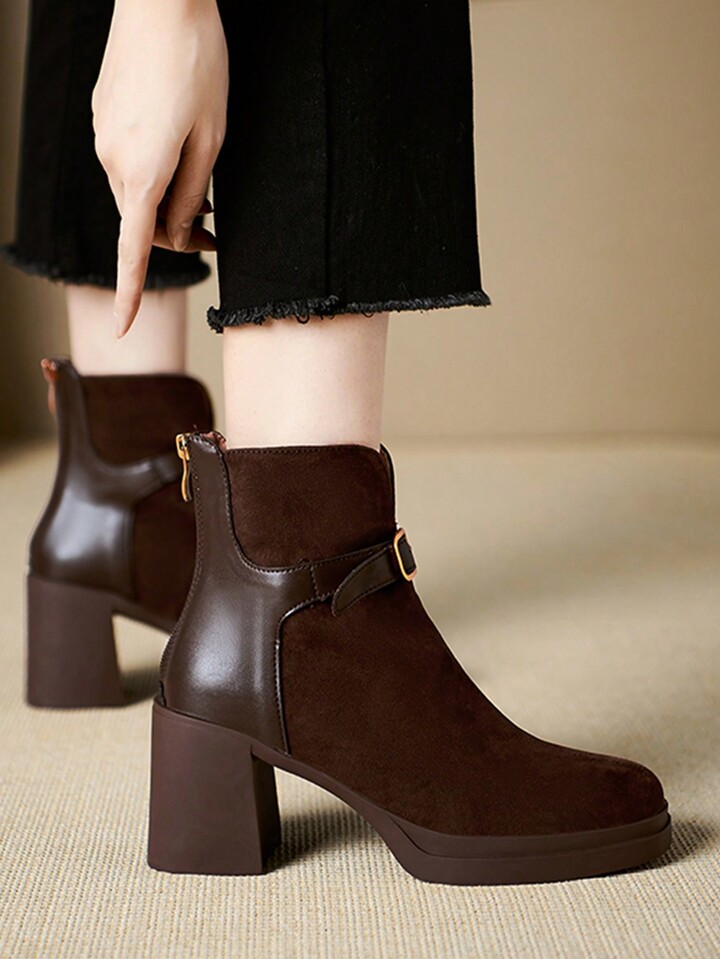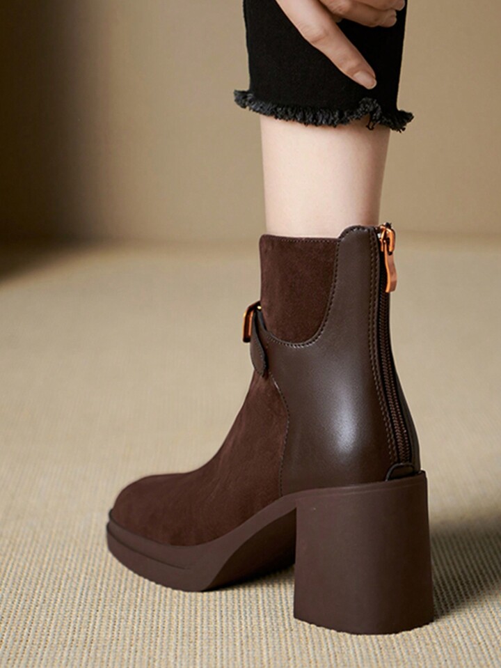 Fairycore Women's Fashionable Short Boots With Thick Soles & Chunky Heels Design, Suede Texture, Rear Zip, Fall/winter