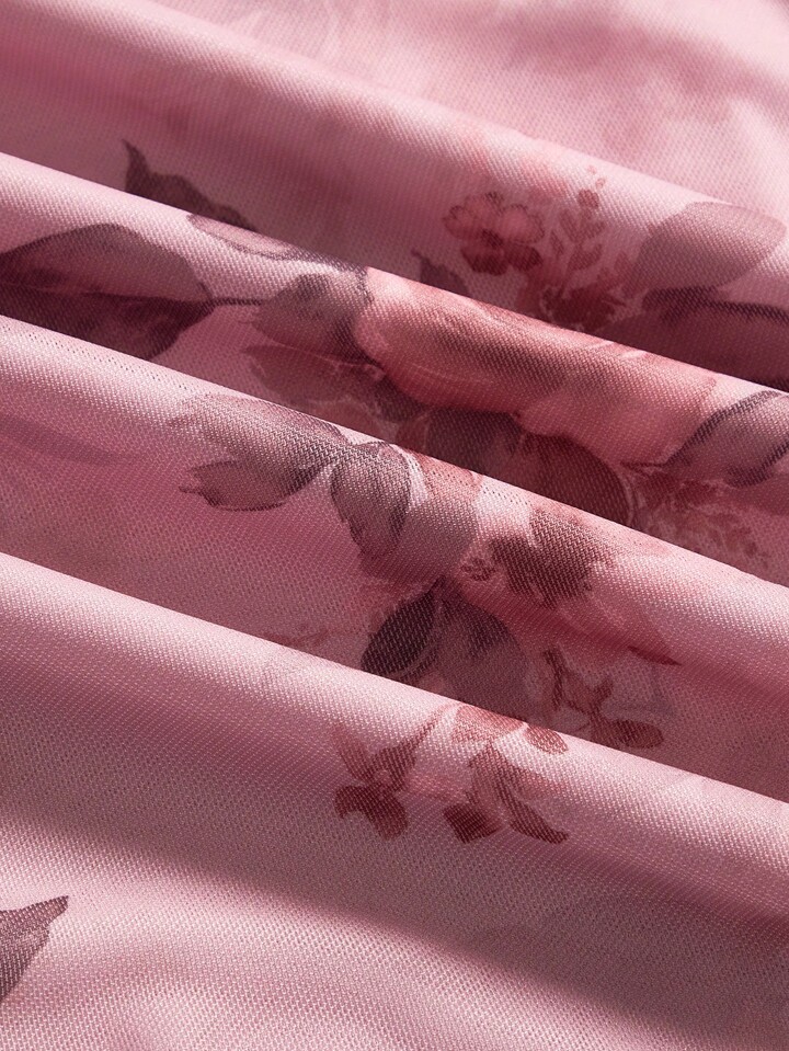 Fairycore Women's Floral Printed Ruched Back-Crossed Dress, For New Year