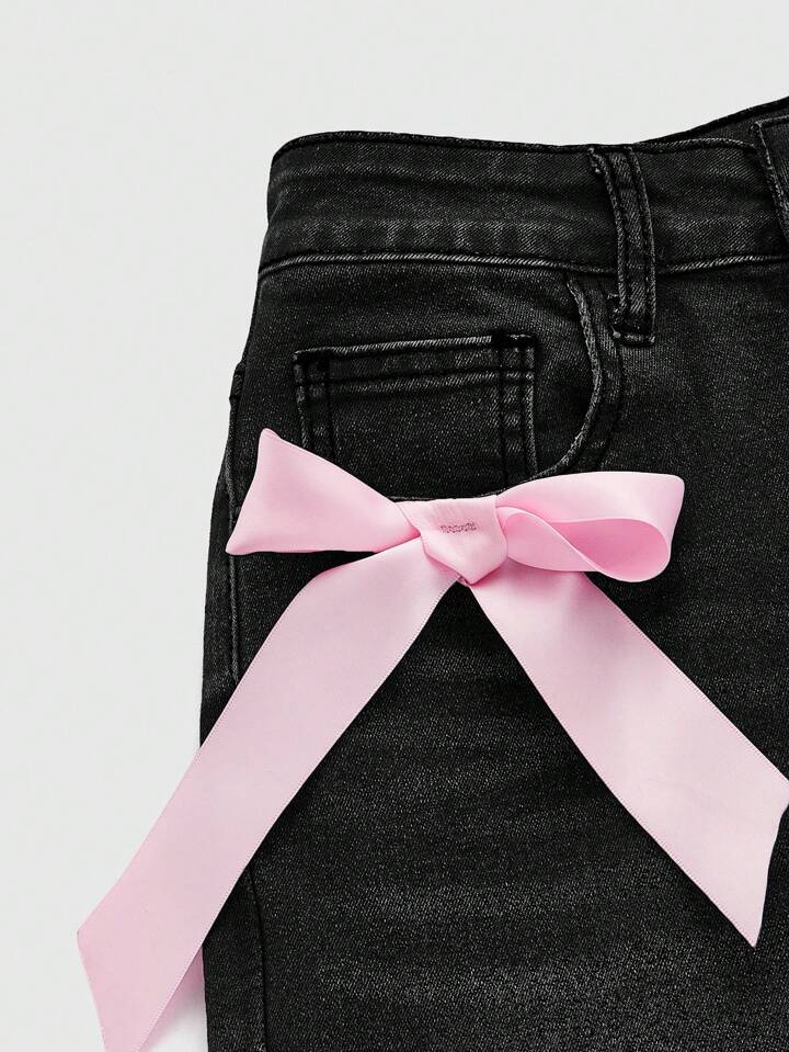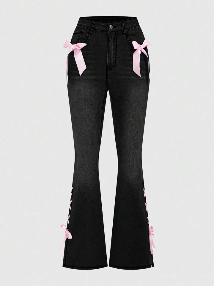 Fairycore Women's Kawaii Bowknot Tie Waist Jeans, School