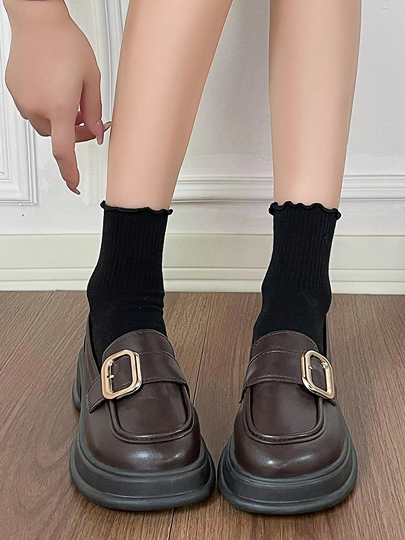 Fairycore Women's New Arrival Round Toe Thick Heeled & Platform Mori Style School Shoes, Brown