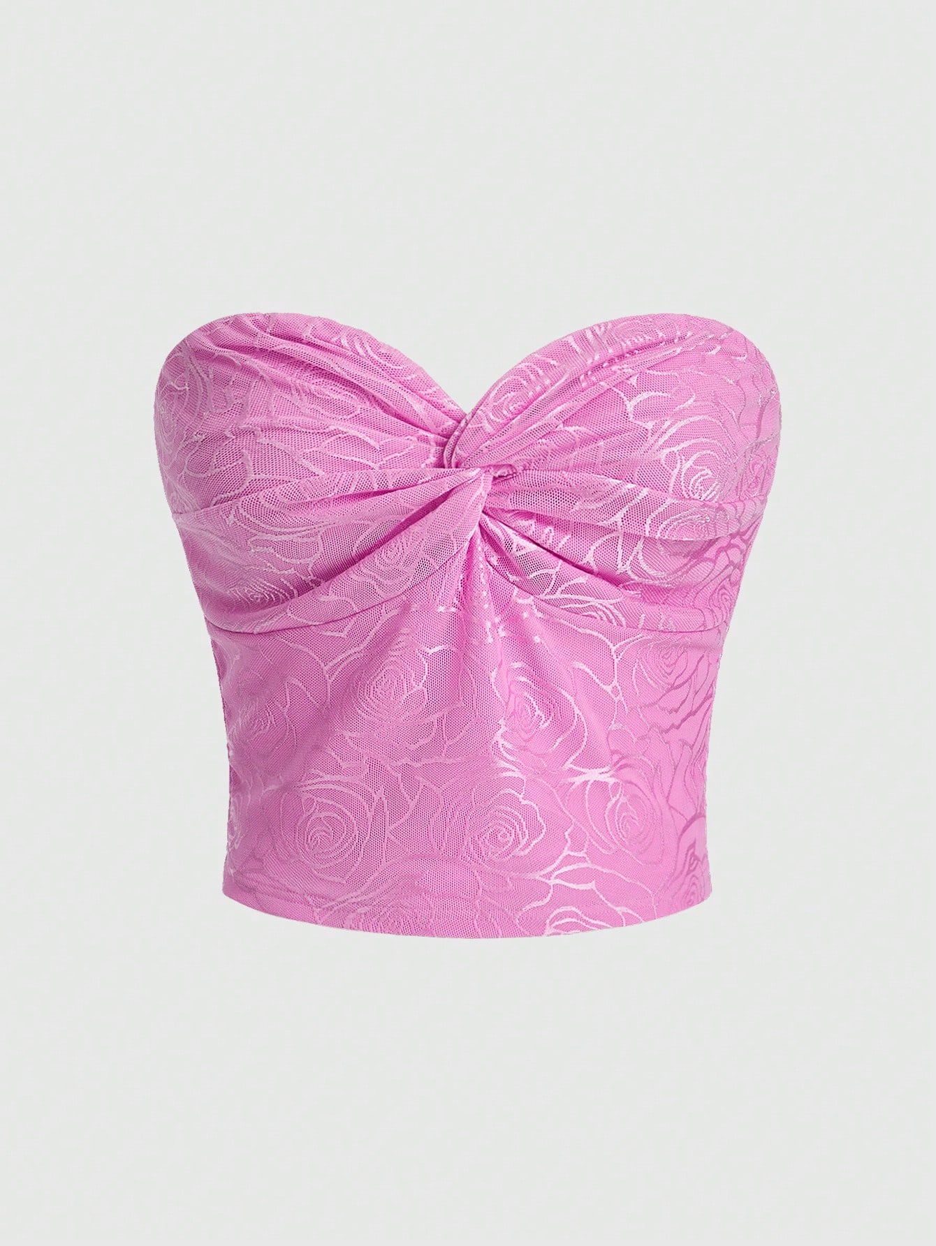 Fairycore Women's Short Cropped Twist Knot Rose Pattern Valentine's Day Strapless Top