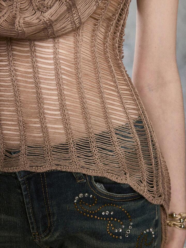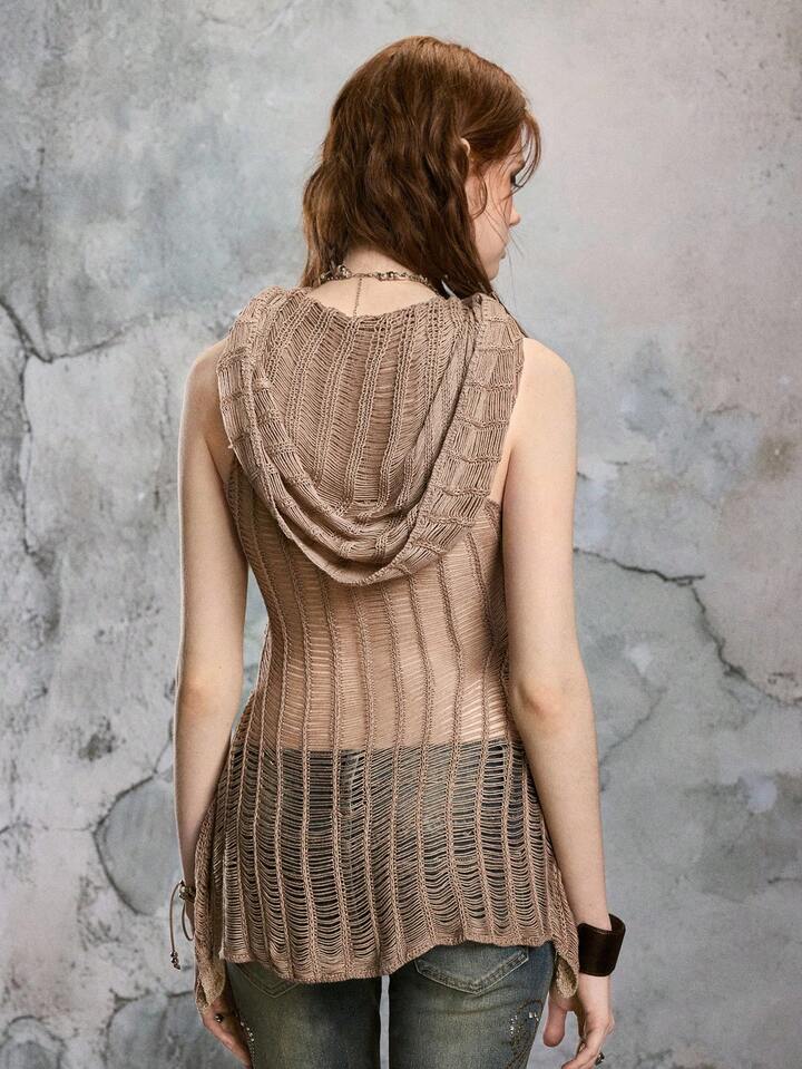 Fairycore Women's Solid Color Asymmetric Hem Distressed Hooded Sleeveless Knit Top