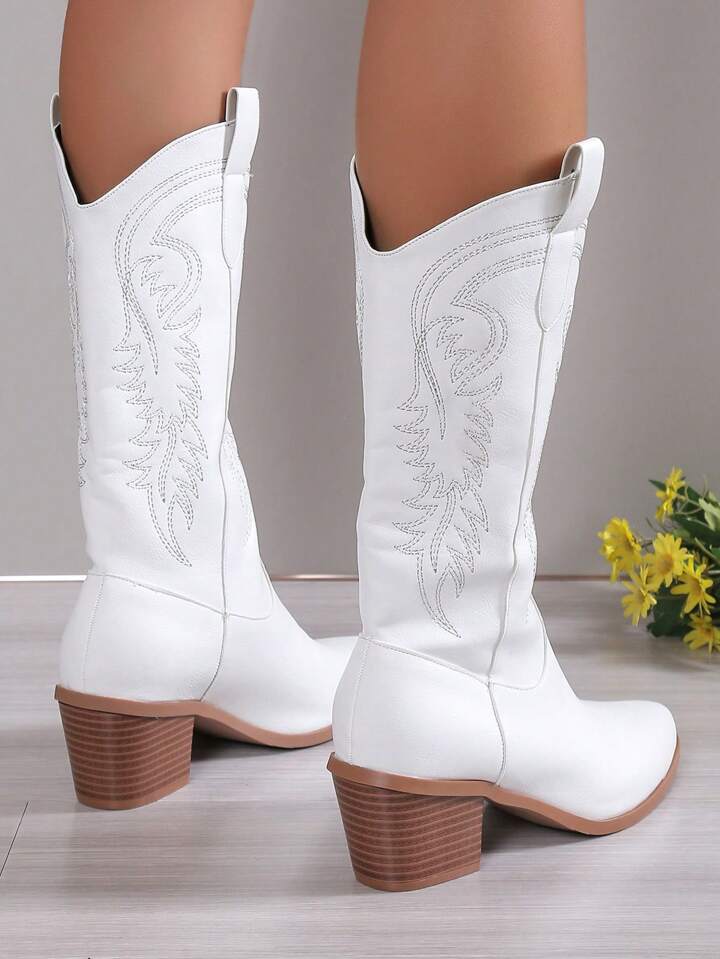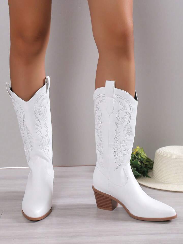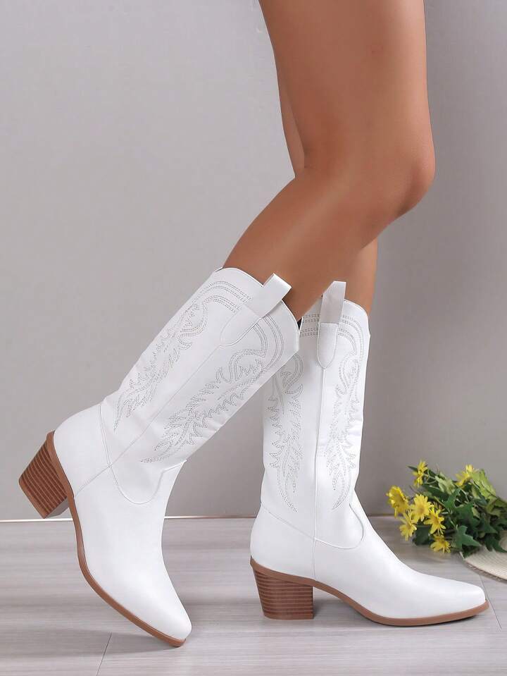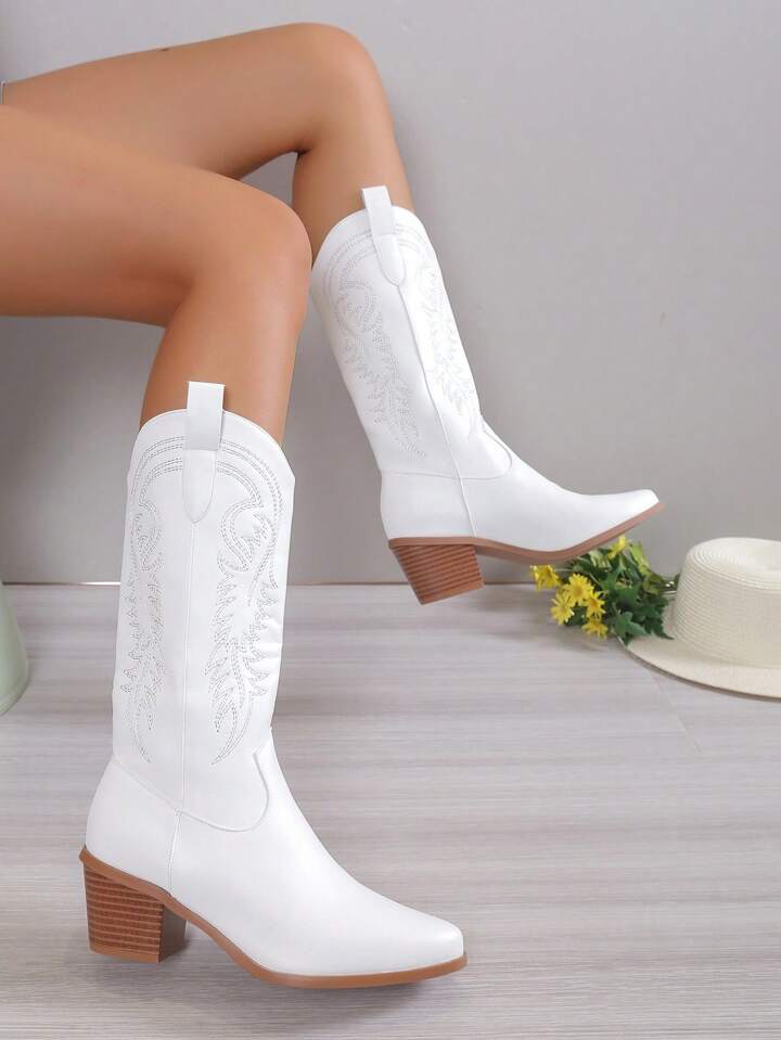 Fairycore Women's Solid High Heeled Mid-Calf Boots, Cowboy Western Boots For Women
