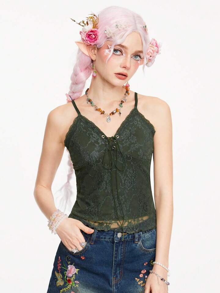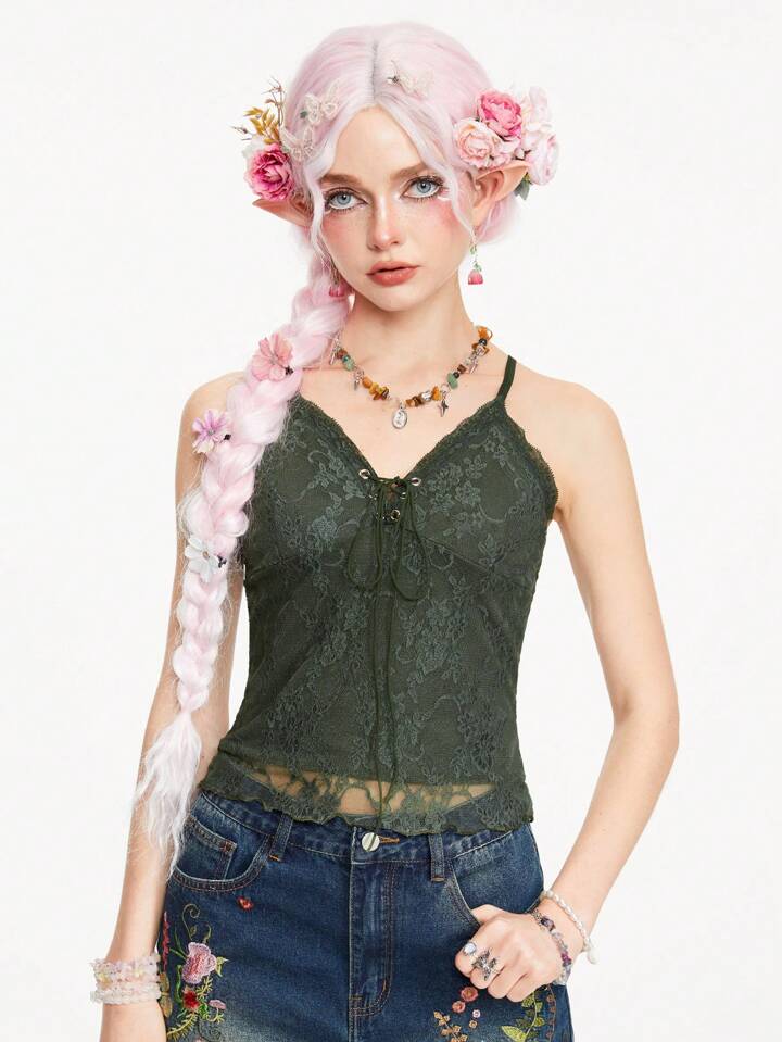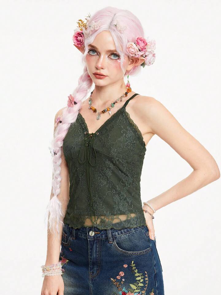 Fairycore Women's Summer Vintage Lace Strap With Tie Design Tank Top