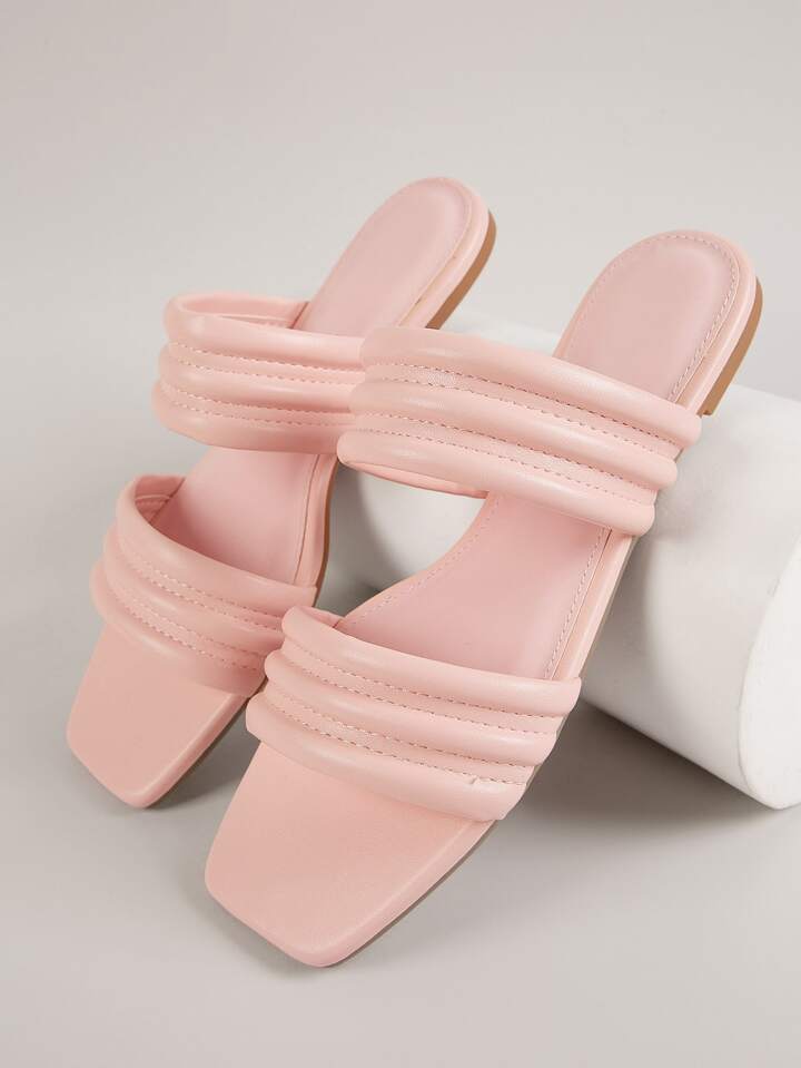 Fake Leather Dual Puffy Vamp Slide Sandals