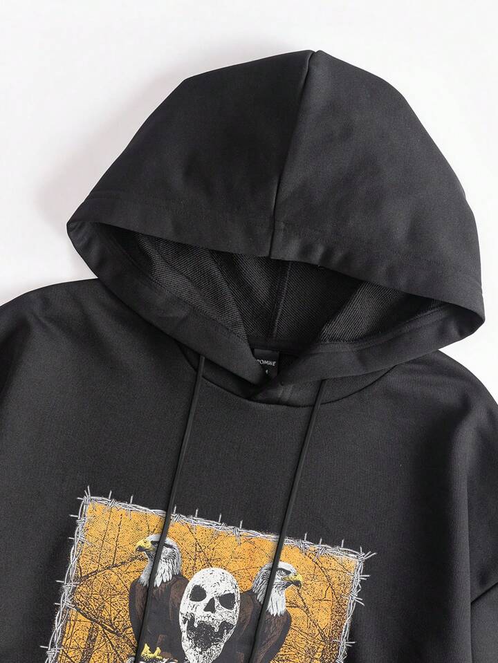 Fakhri Hilmi Guys Skeleton & Letter Graphic Drawstring Hoodie