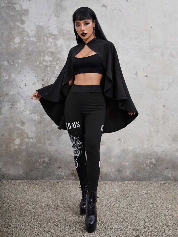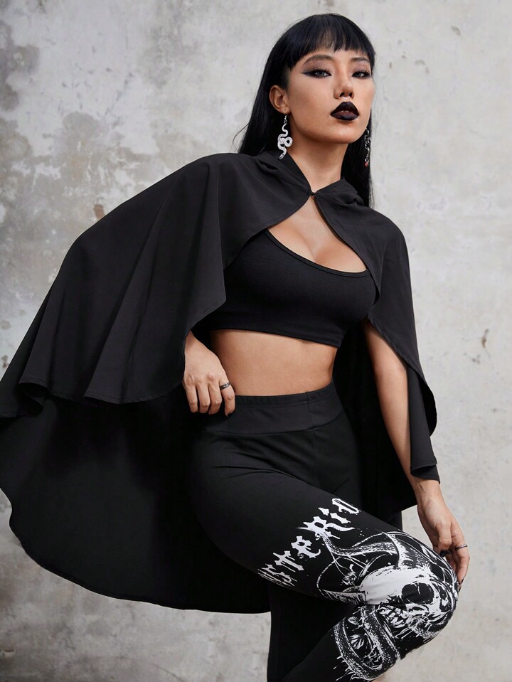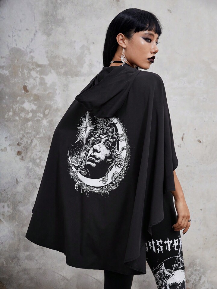 Fantinitattoo Figure Graphic Hooded Cape Top
