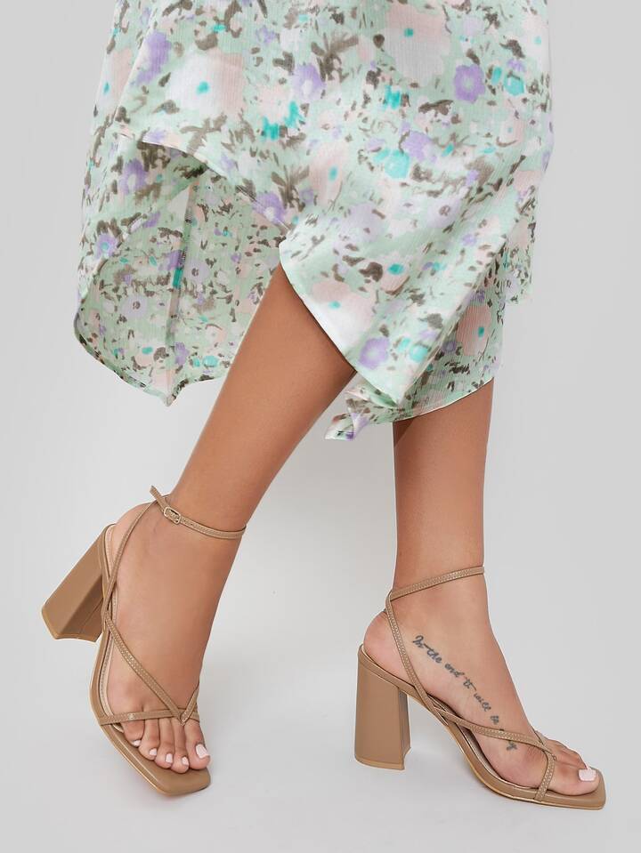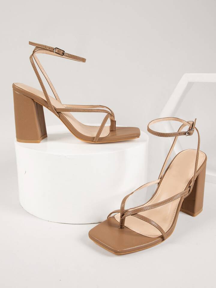 Faux Leather Toe-Loop Strappy Heels